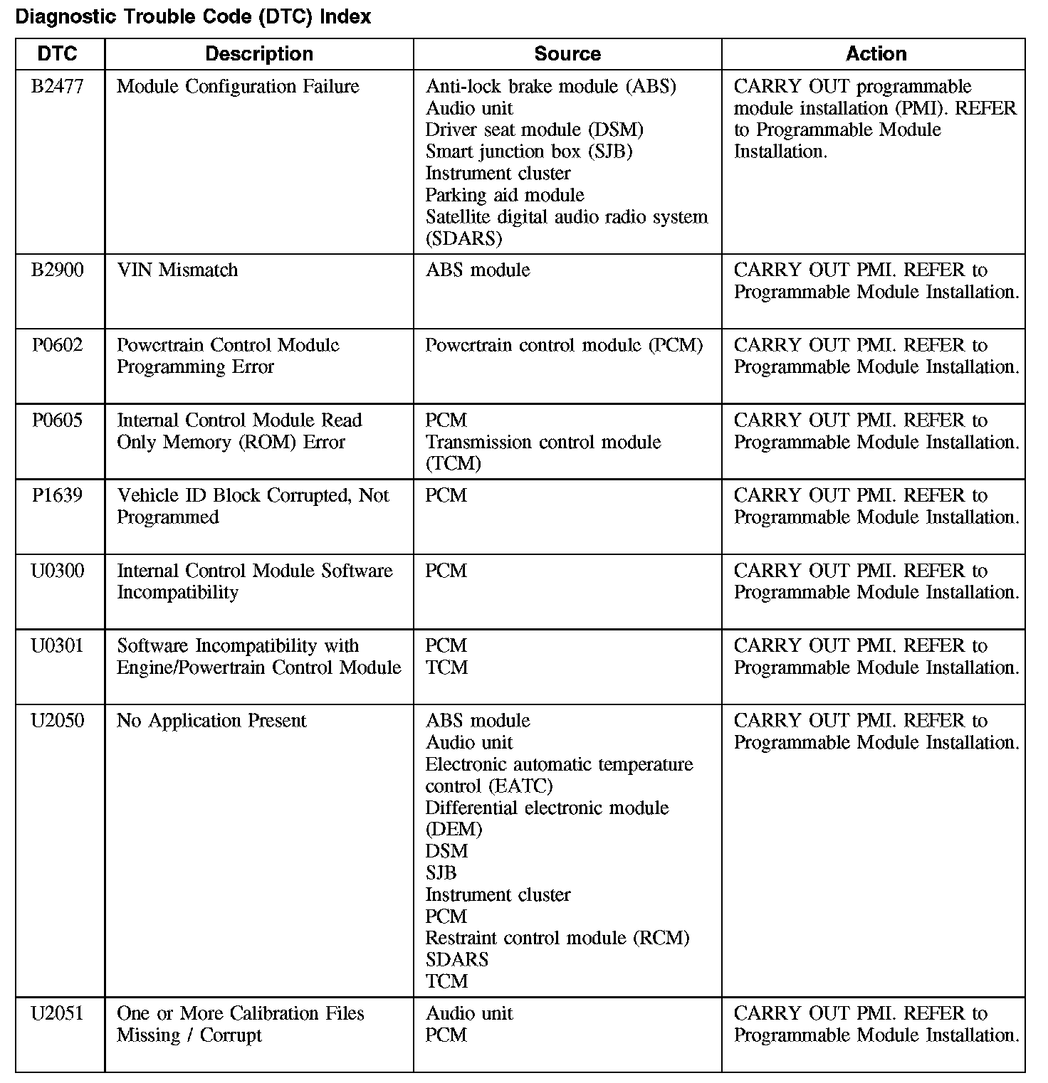 B2477-B2900 / P0602-P1639 / U0300-U2051: