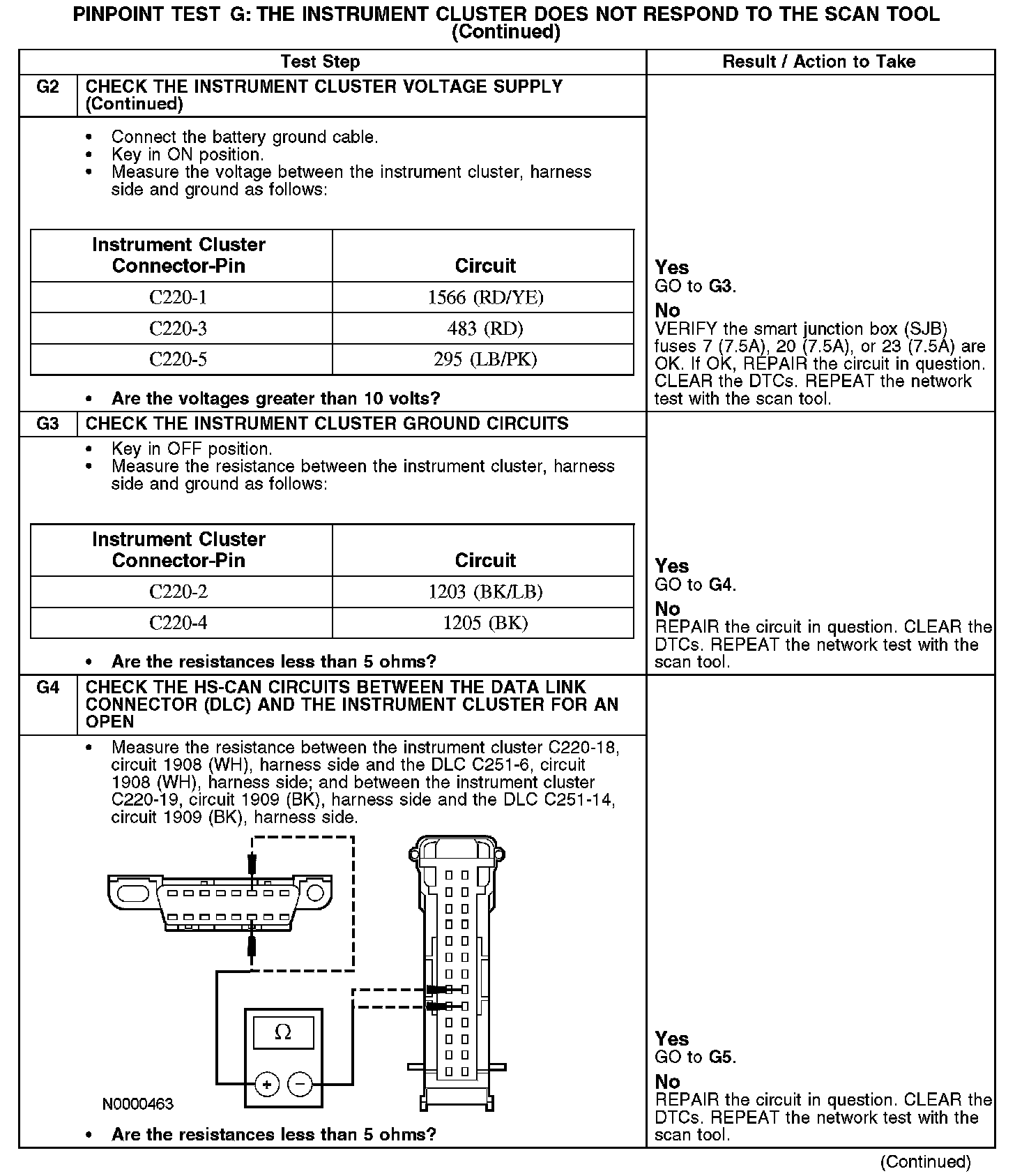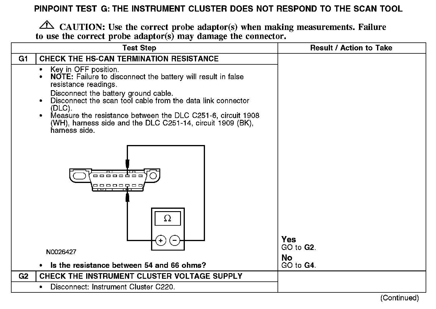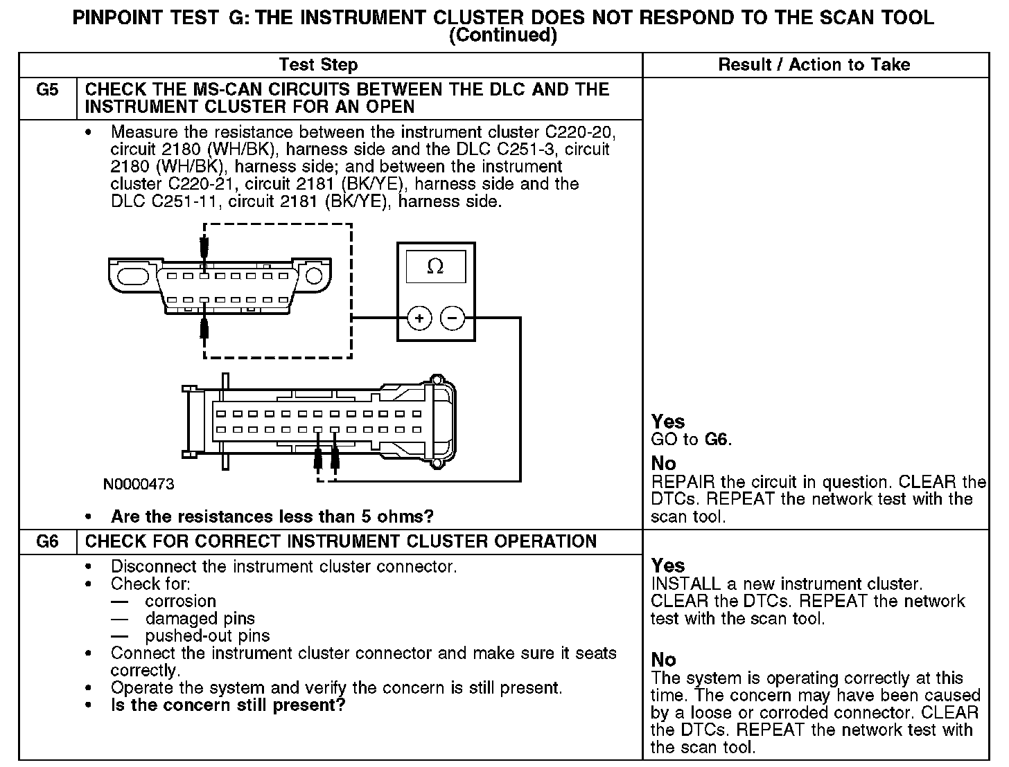 PINPOINT TEST G: THE INSTRUMENT CLUSTER DOES NOT RESPOND TO THE SCAN TOOLG1-G2: