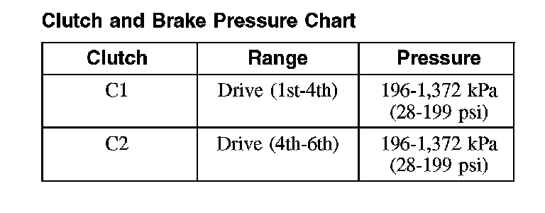 Clutch and Brake Pressure Chart: