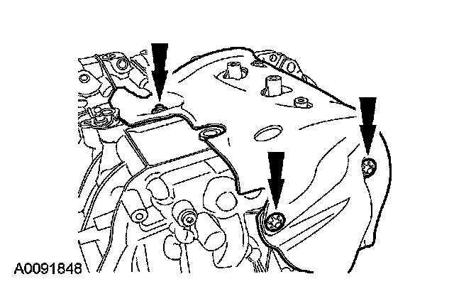 7. Install the 3 transaxle-to-engine retaining bolts.