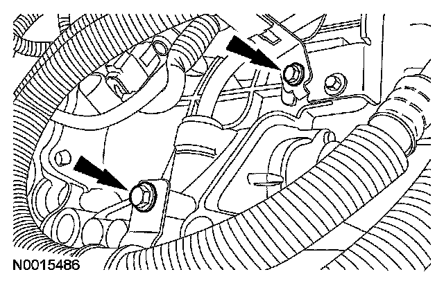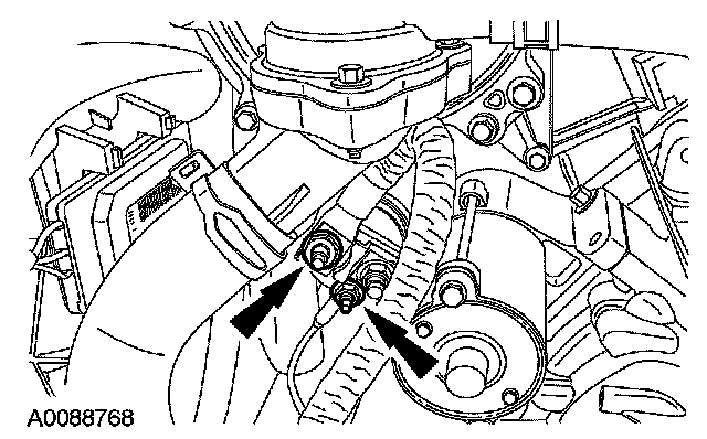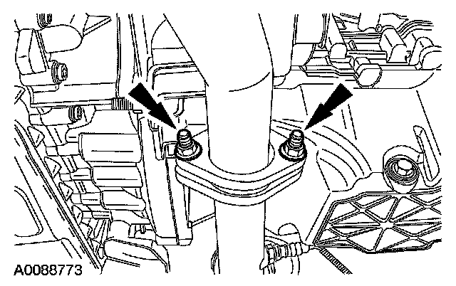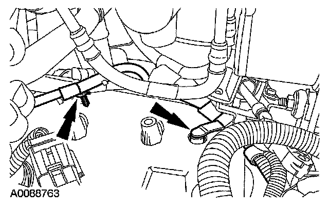 10. Position the transmission fluid cooler tubes in place and install the bolts.