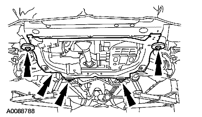 15. Using a suitable powertrain lift, position the subframe in place and install the 4 bolts.