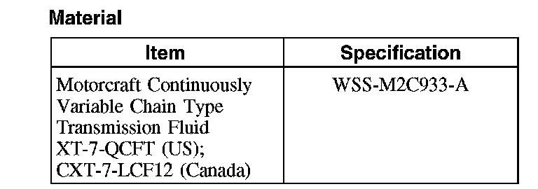 CAUTION: MERCON (R), MERCON (R) V, MERCON (R) SP, Motorcraft Premium Automatic Transmission Fluid and Motorcraft Continuously Variable Chain Type Transmission Fluid are not interchangeable transmission fluids. The use of any fluid other than what is recommended for this transmission will cause transmission damage.