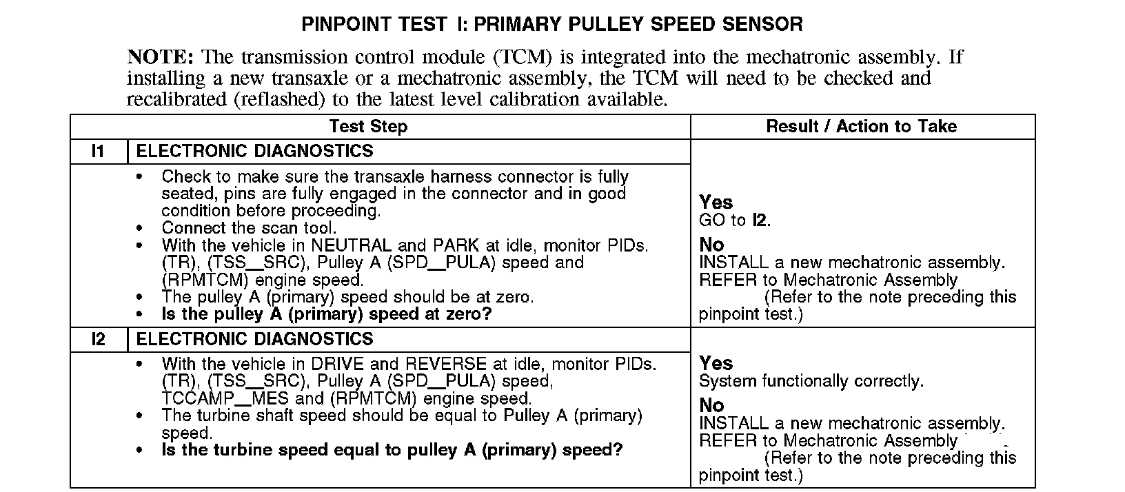 TEST I: PRIMARY PULLEY SPEED SENSOR