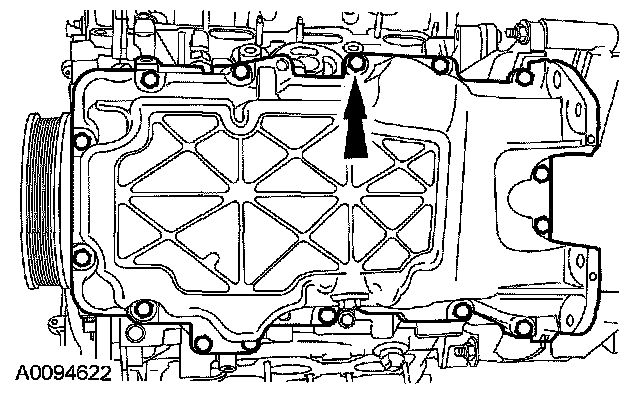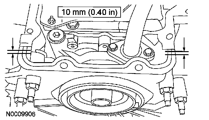 50. NOTE: The oil pan must be installed and the bolts tightened within 4 minutes of sealant application.Apply a 10 mm (0.39 in) diameter dot of silicone sealant to the areas indicated.