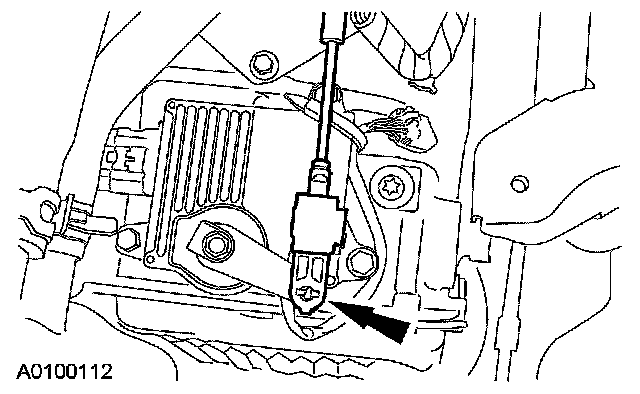 ^ Attach the electrical connector to the shift cable bracket.