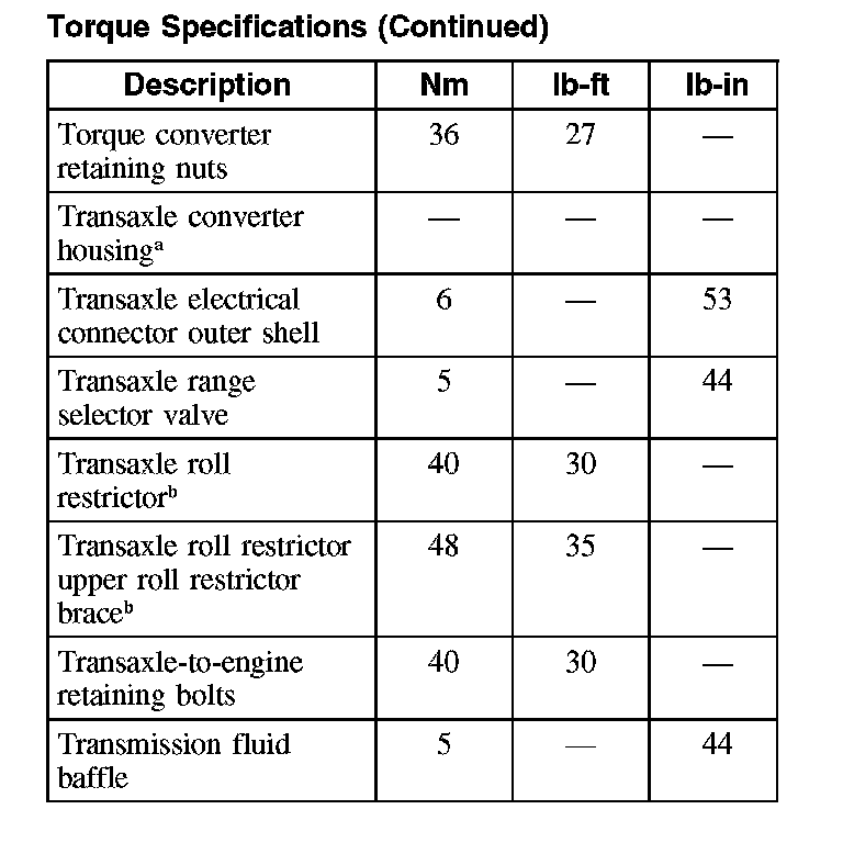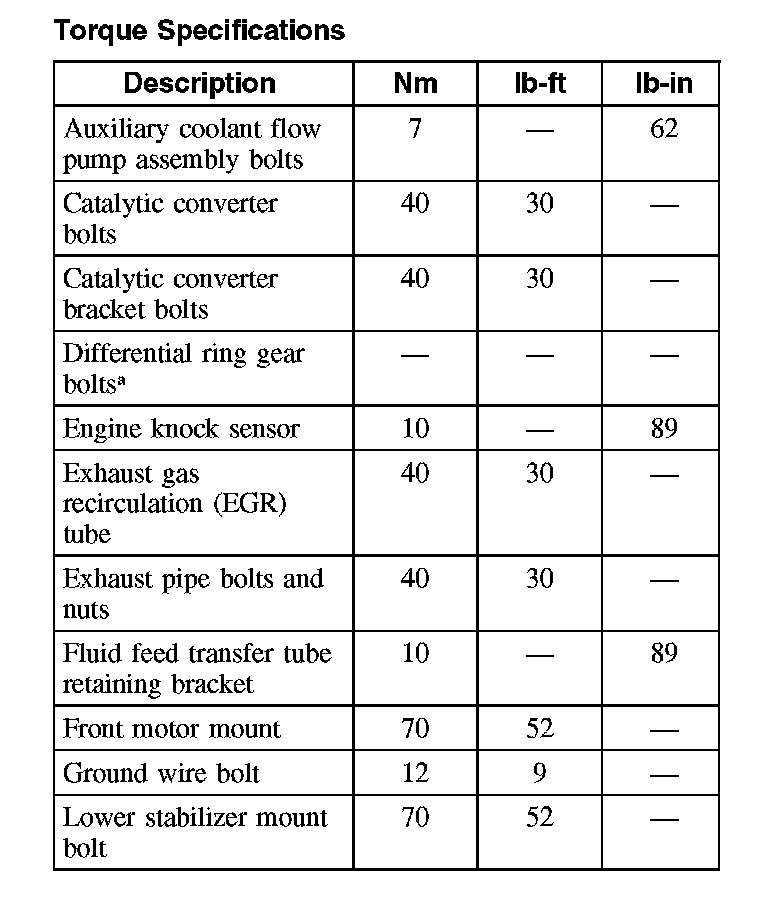Torque SpecificationsNote: Fastener replacement may be required. Refer to Component Service and Repair for further information.