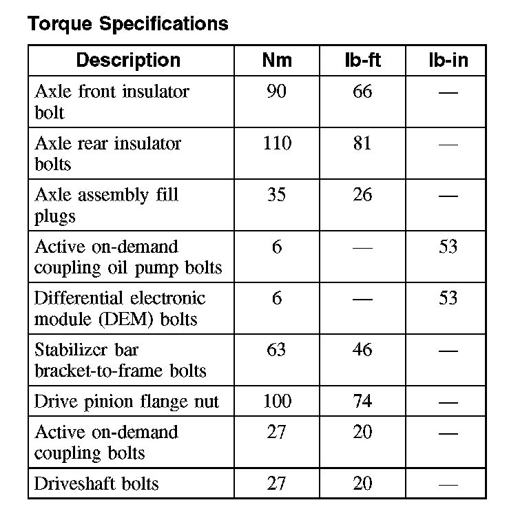 Torque Specifications: