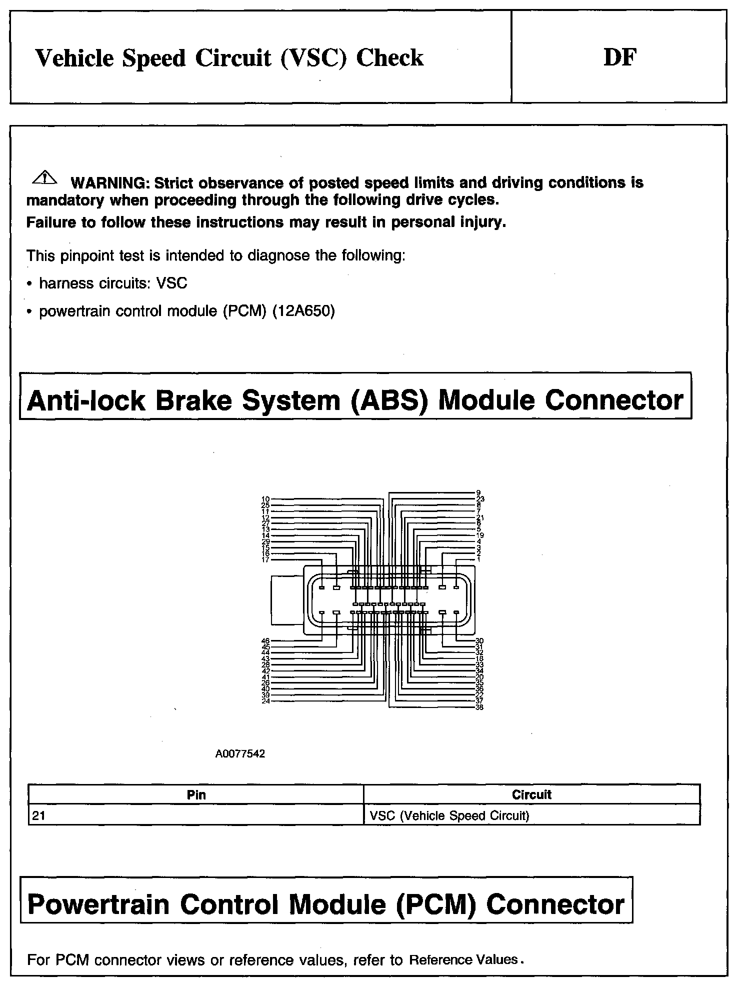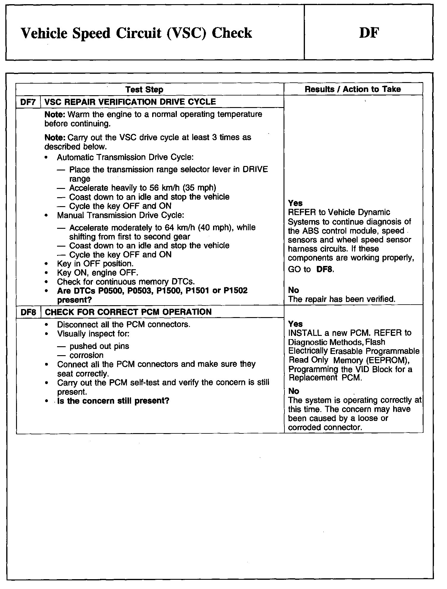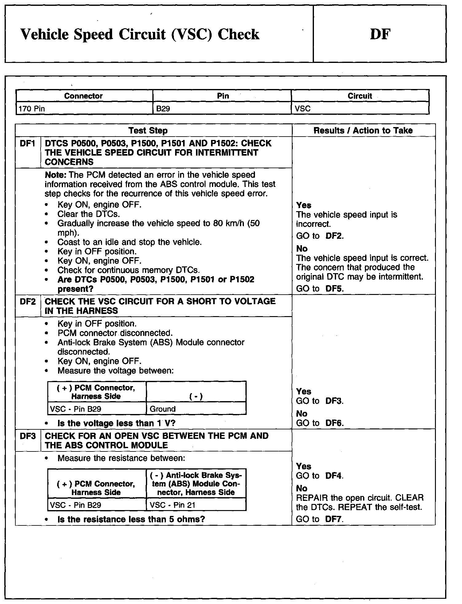 Tests DF: Vehicle Speed Circuit (VSC) Check