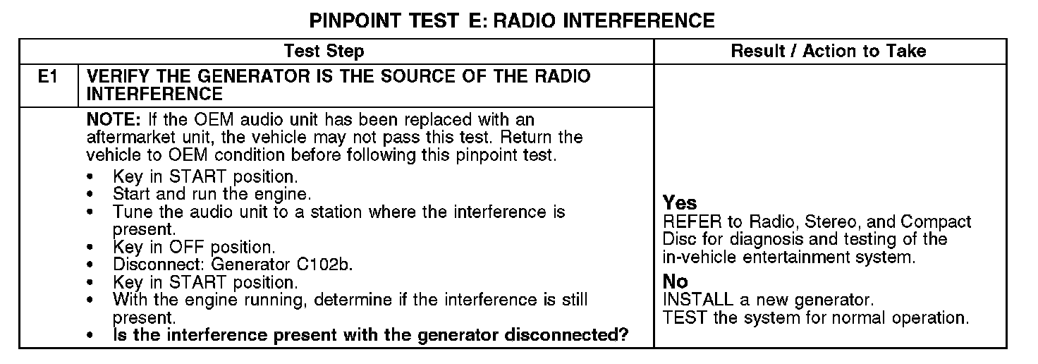 PINPOINT TEST E: RADIO INTERFERENCENormal Operation