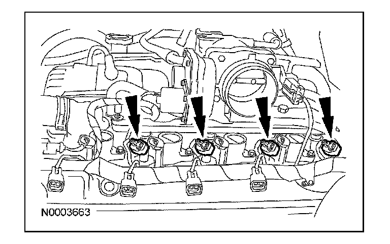 NOTE: Use compressed air to remove any foreign material from the spark plug well before removing the spark plugs.