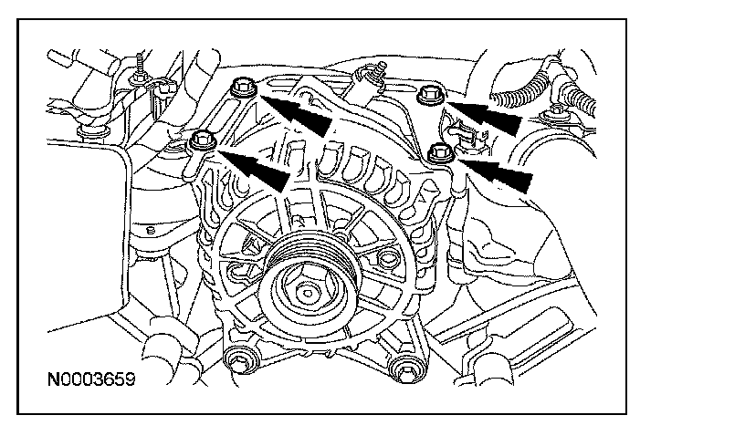 15. Remove the 4 generator mounting bracket bolts and the bracket.
