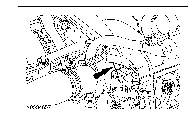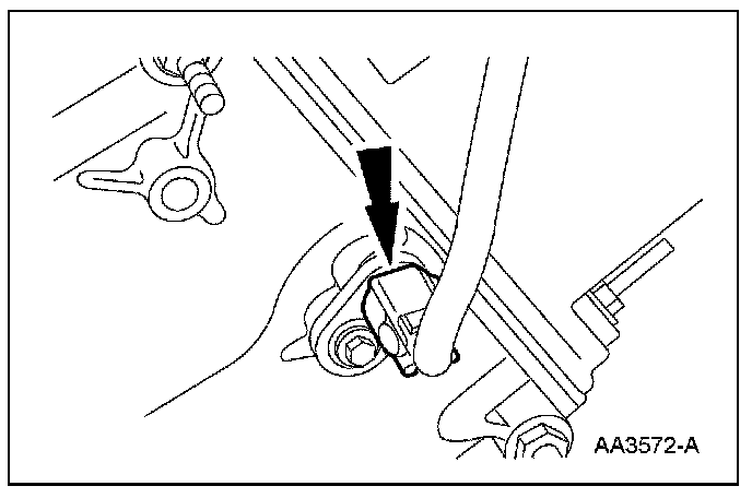 28. Remove the intake manifold crash bracket bolt and prevent the bolt from contacting the cylinder head with a rubber band or tie strap.