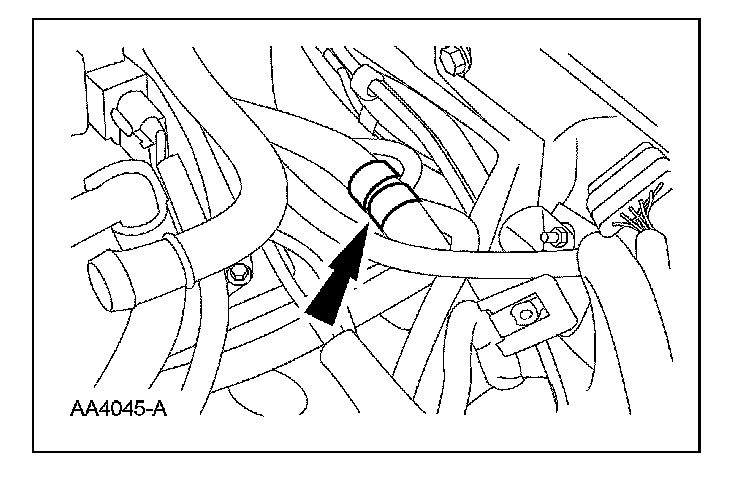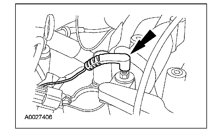 23. Disconnect the knock sensor (KS) electrical connector and the wiring harness pin-type retainer.