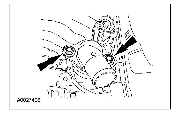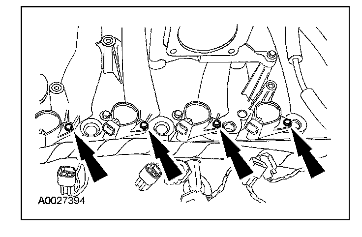 31. Remove the 2 bolts and the coolant outlet adapter.