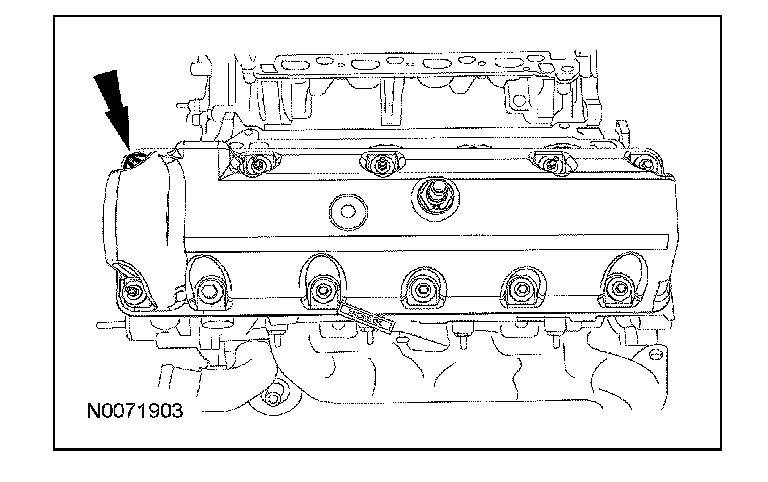 CAUTION: During engine repair procedures, cleanliness is extremely important. Any foreign material (including any material created while cleaning gasket surfaces) that enters the oil passages, coolant passages or the oil pan may cause engine failure.