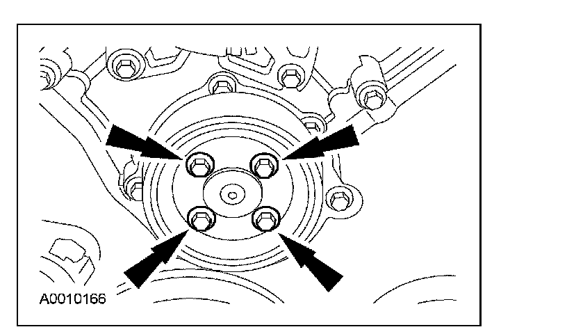 44. Remove the 4 bolts and the coolant pump pulley.