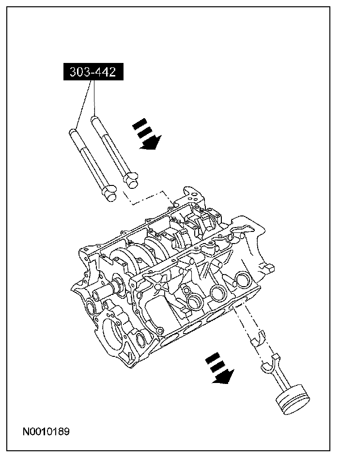 Using the special tool, push the piston through the top of the cylinder block.