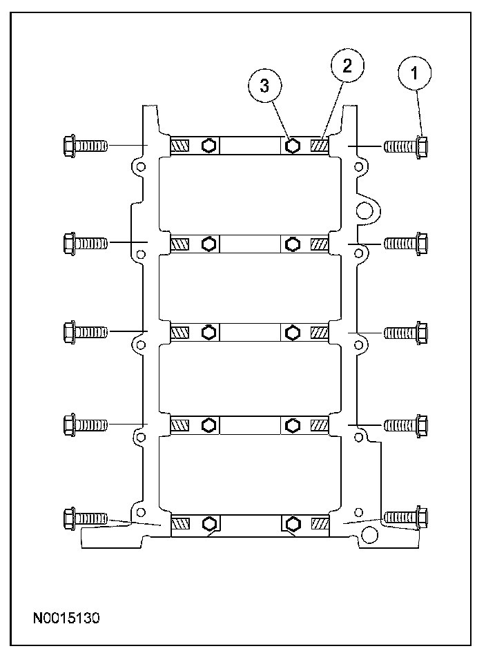 1. Remove and discard the 10 cross-mounted main cap bolts.