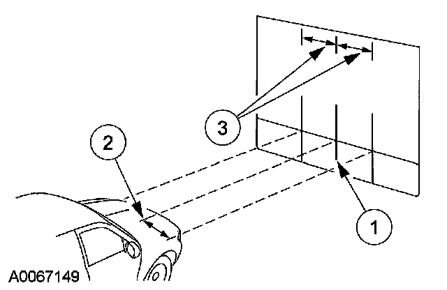 2 Measure from the center of the headlamp to the center line of the vehicle.