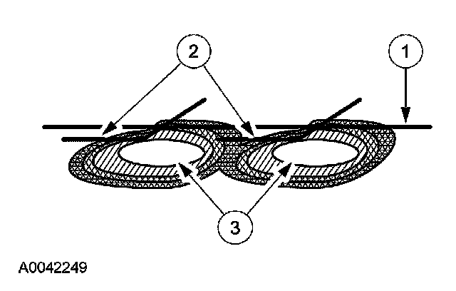 Identify at the top edge of this high intensity area a distinct horizontal cutoff in the beam pattern. If the top edge of this cutoff is not even with the horizontal reference line, the headlamp beam needs to be adjusted.