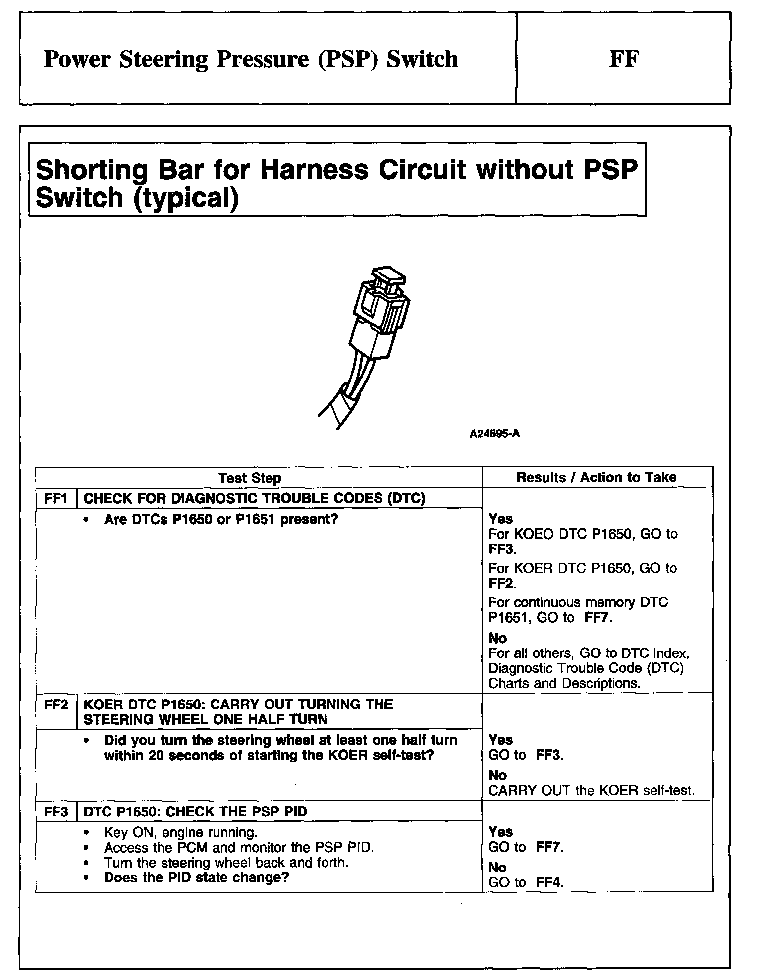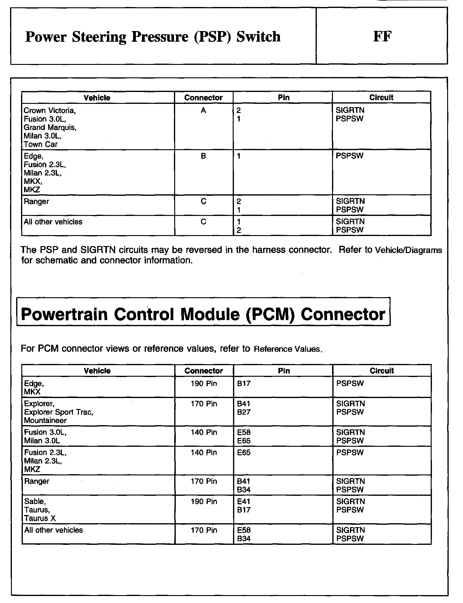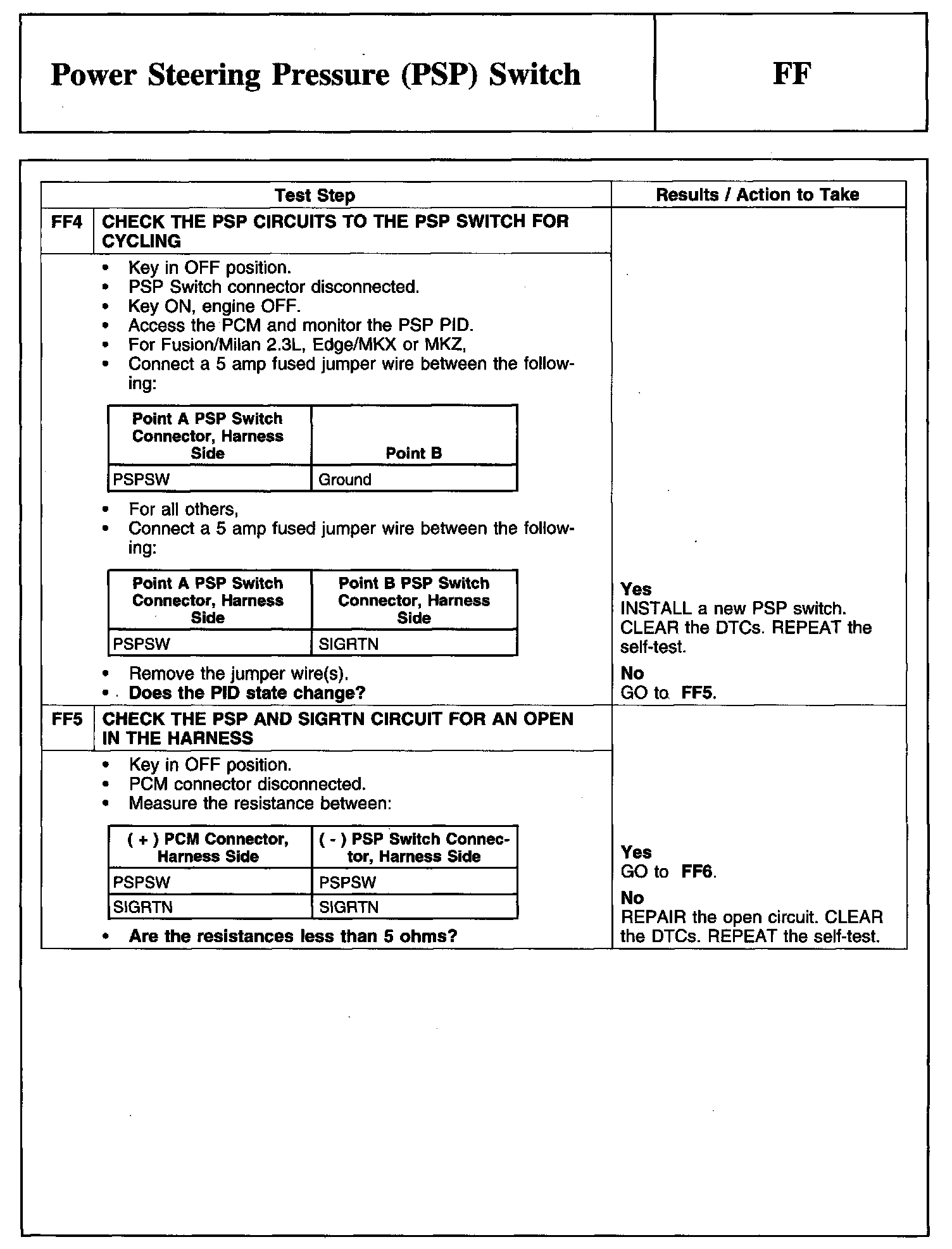 PINPOINT TEST FF: POWER STEERING PRESSURE (PSP) SWITCH