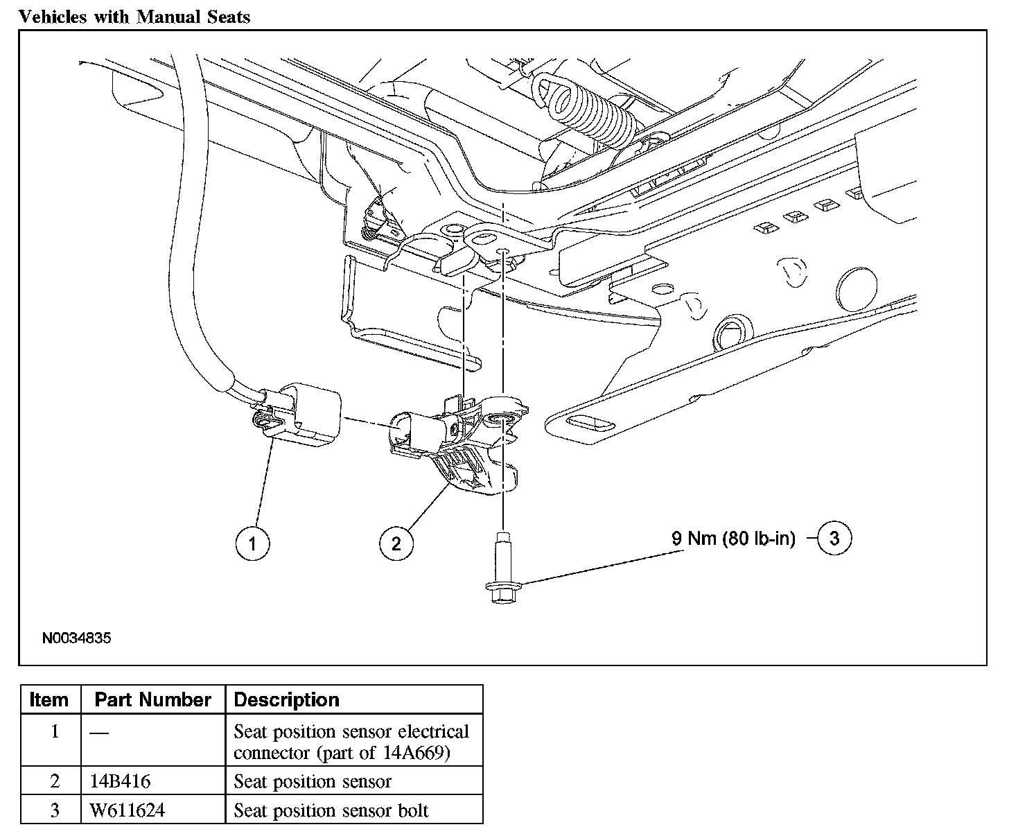 NOTE: The power seat position sensor is mounted on the inboard side of the driver inboard seat track.
