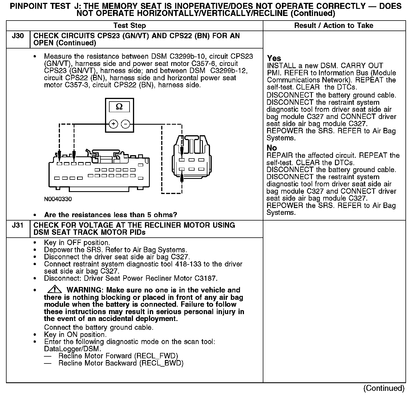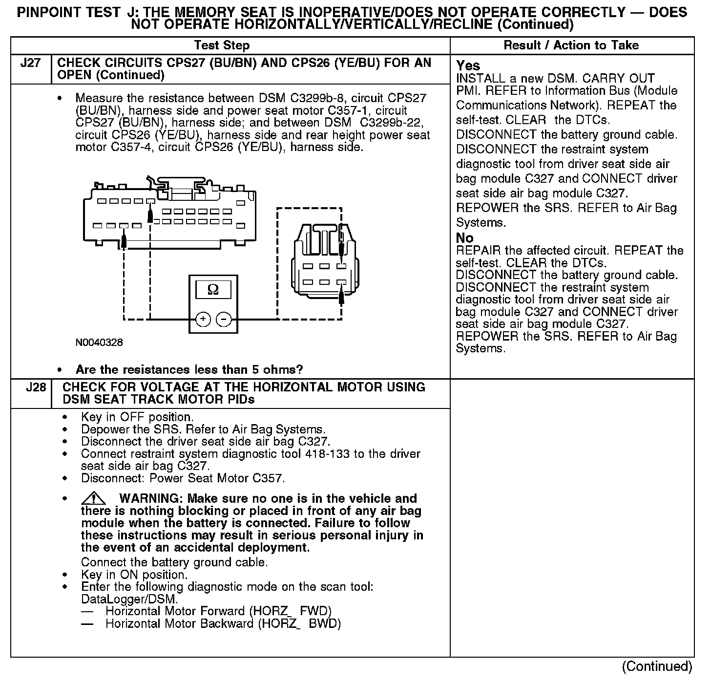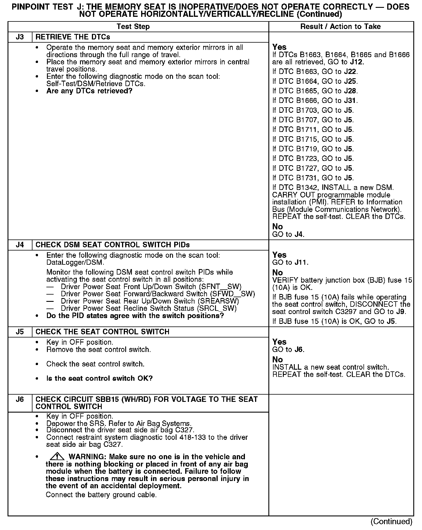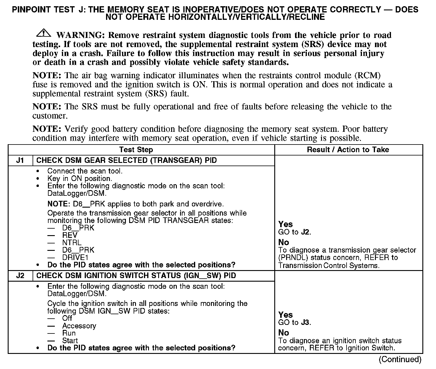 PINPOINT TEST J: THE MEMORY SEAT IS INOPERATIVE/DOES NOT OPERATE CORRECTLY - DOES NOT OPERATE HORIZONTALLY/VERTICALLY/RECLINENormal Operation