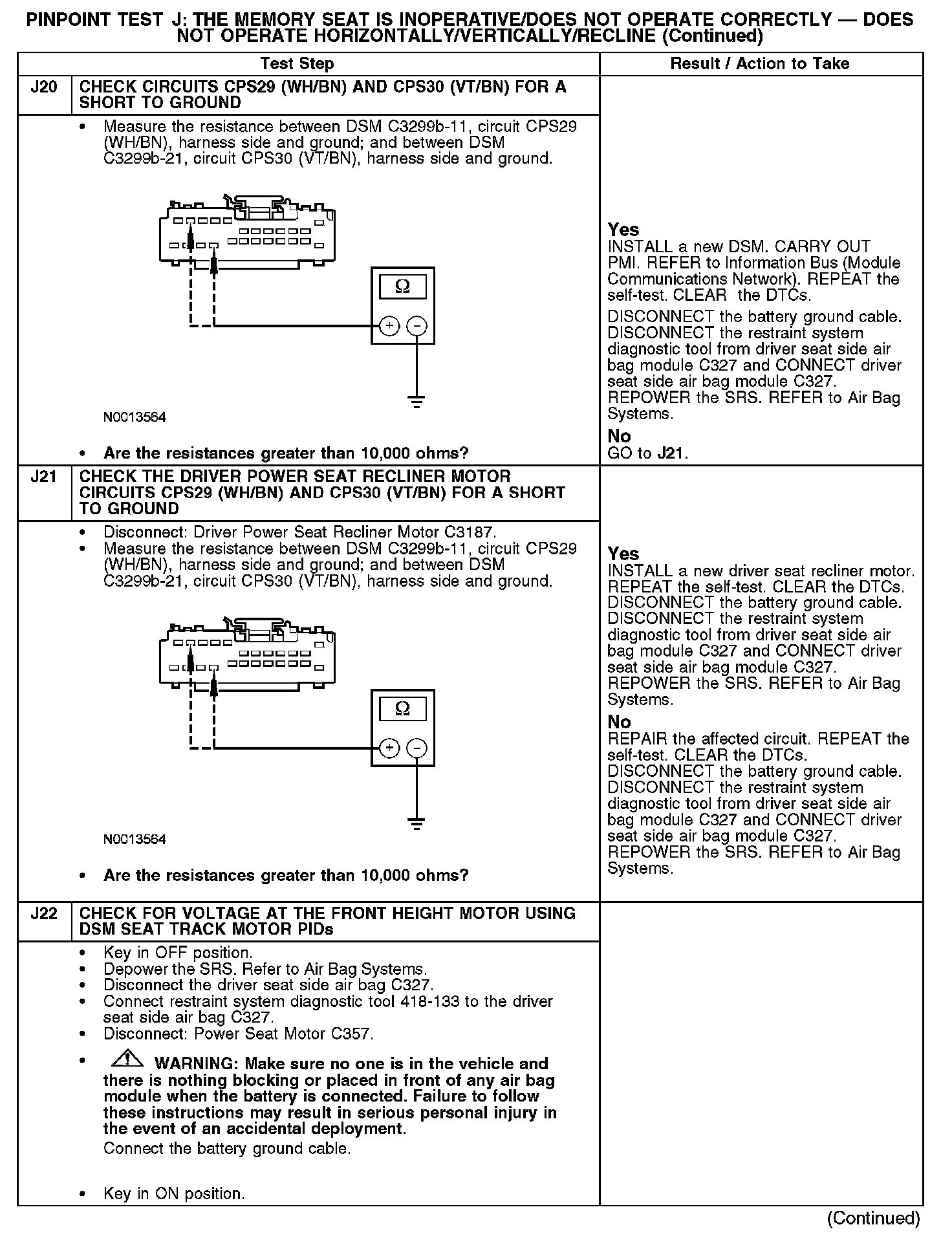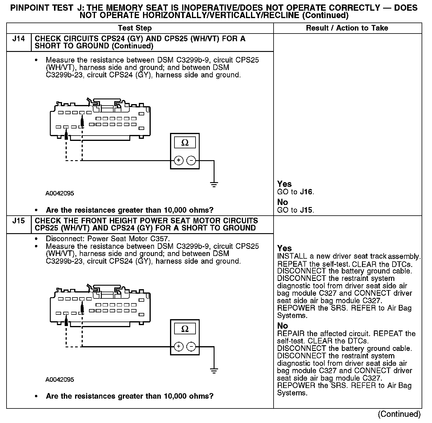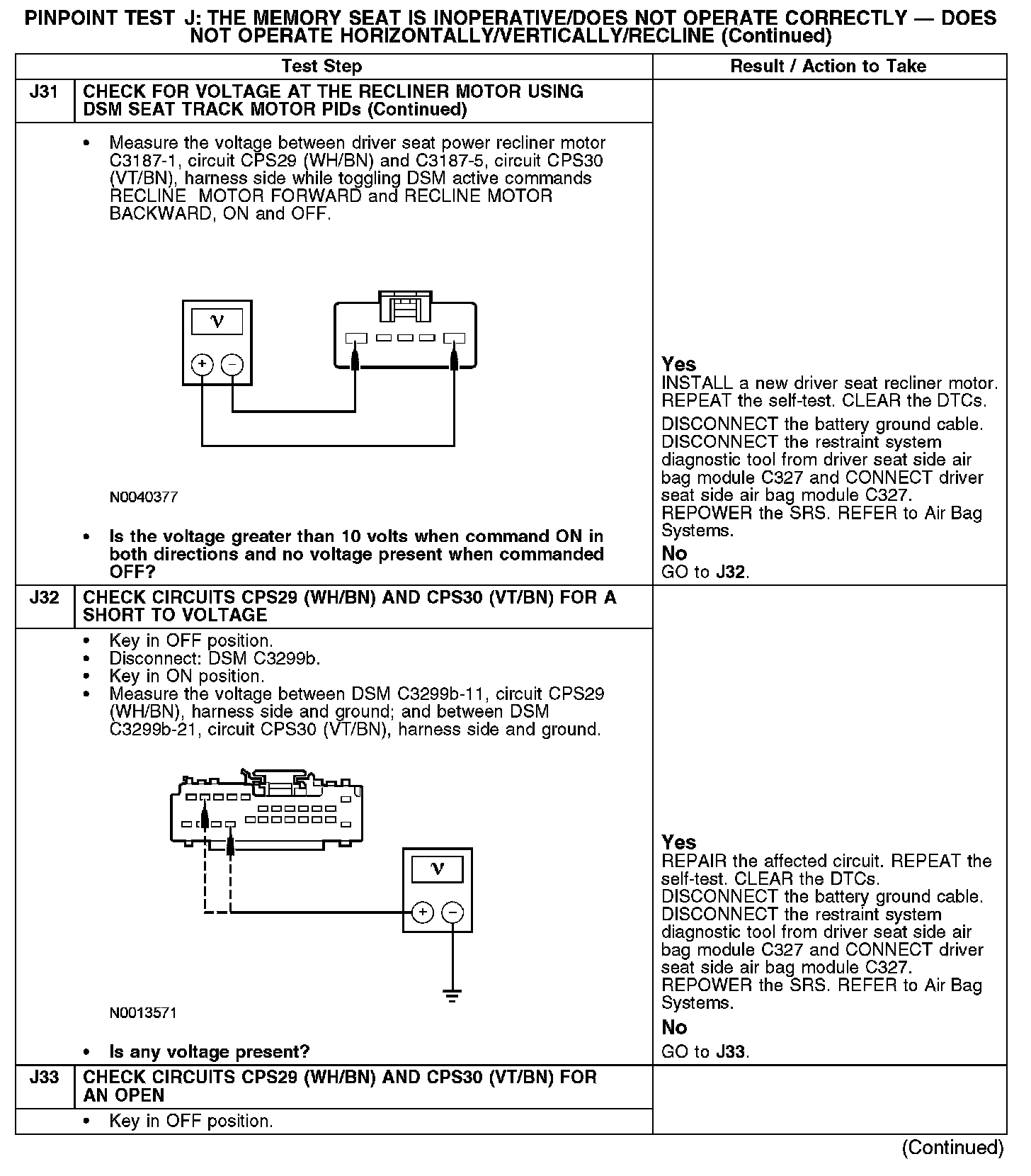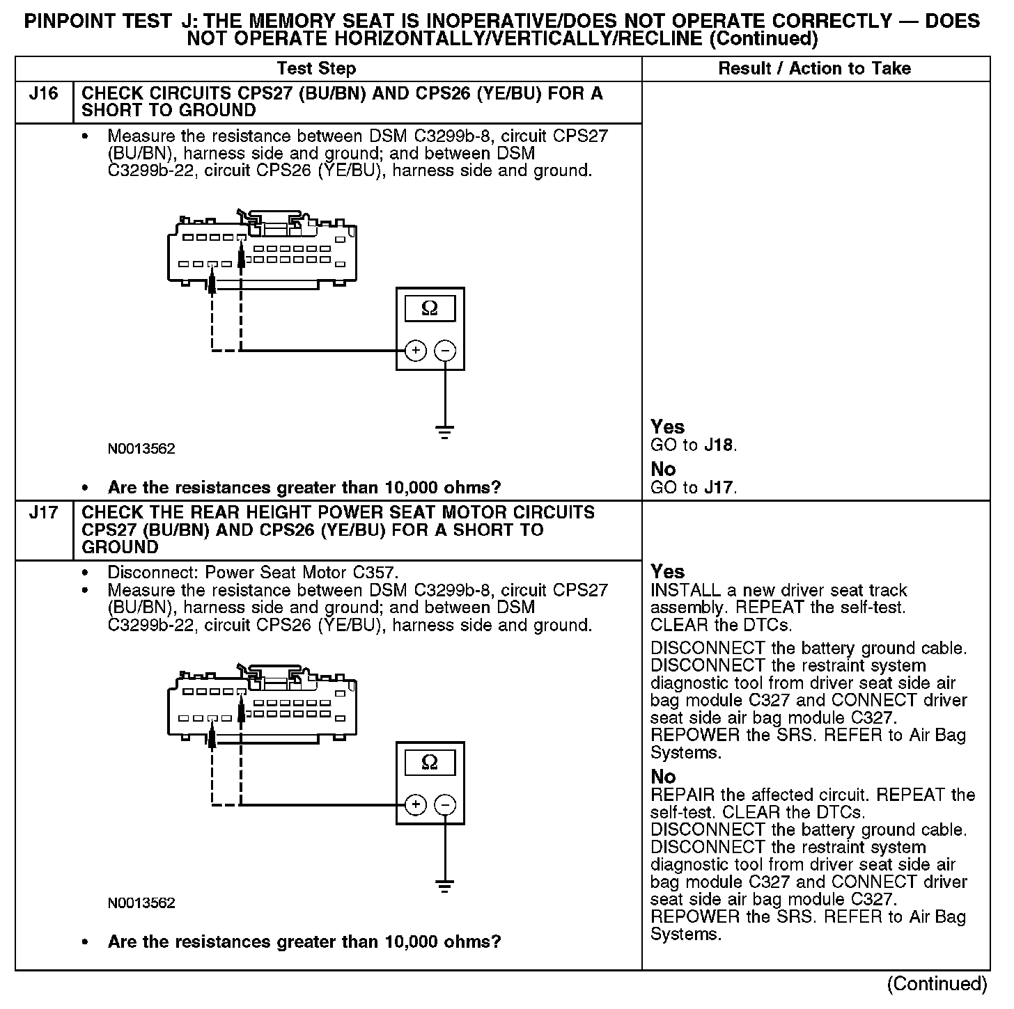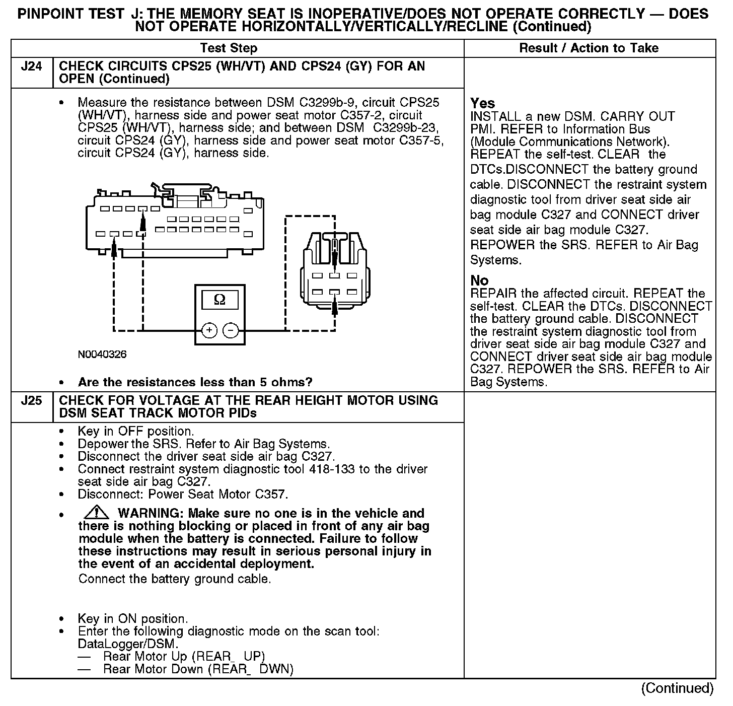 PINPOINT TEST J: THE MEMORY SEAT IS INOPERATIVE/DOES NOT OPERATE CORRECTLY - DOES NOT OPERATE HORIZONTALLY/VERTICALLY/RECLINENormal Operation