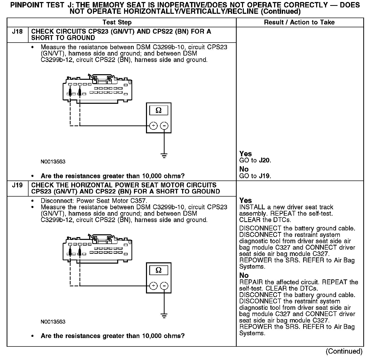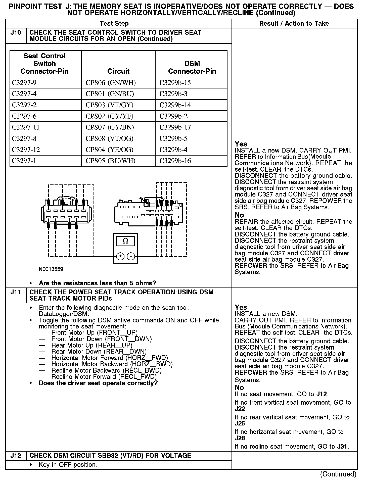 Test J: The Memory Seat Is Inoperative/Does Not Operate Correctly - Does Not Operate Horizontally/Vertically/Recline