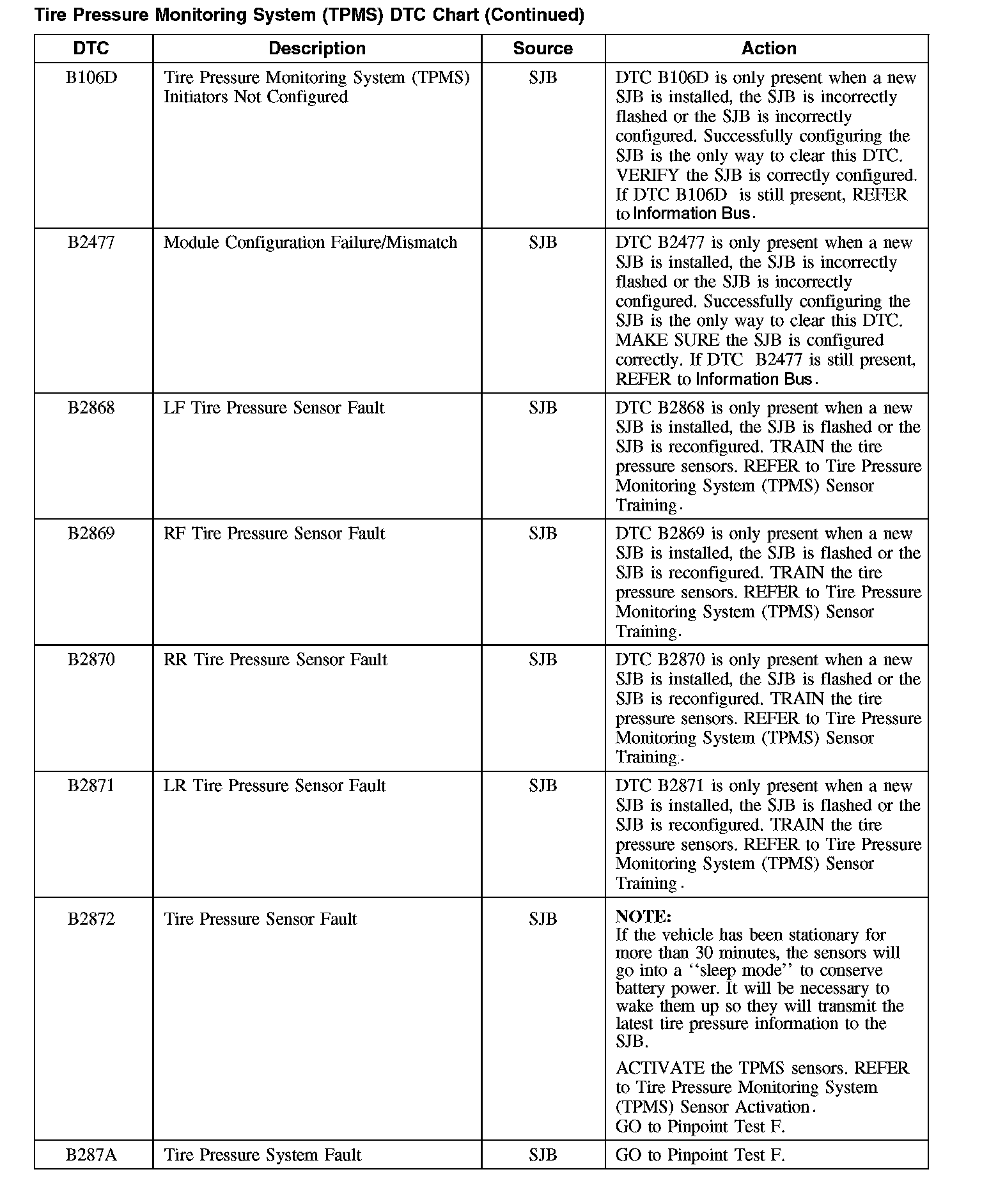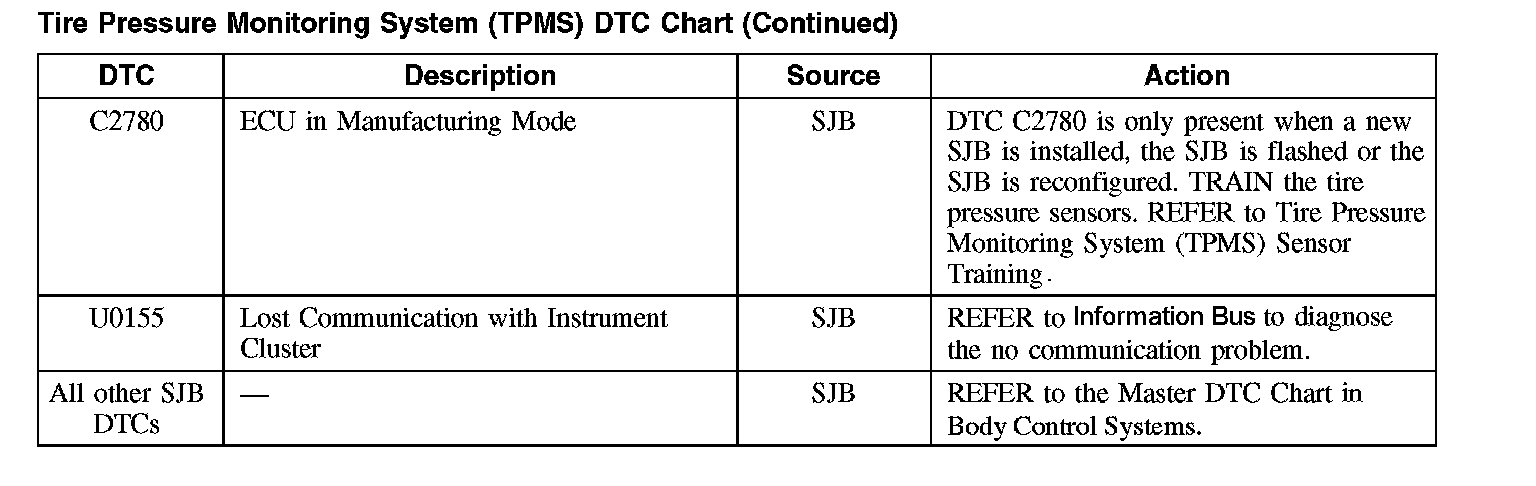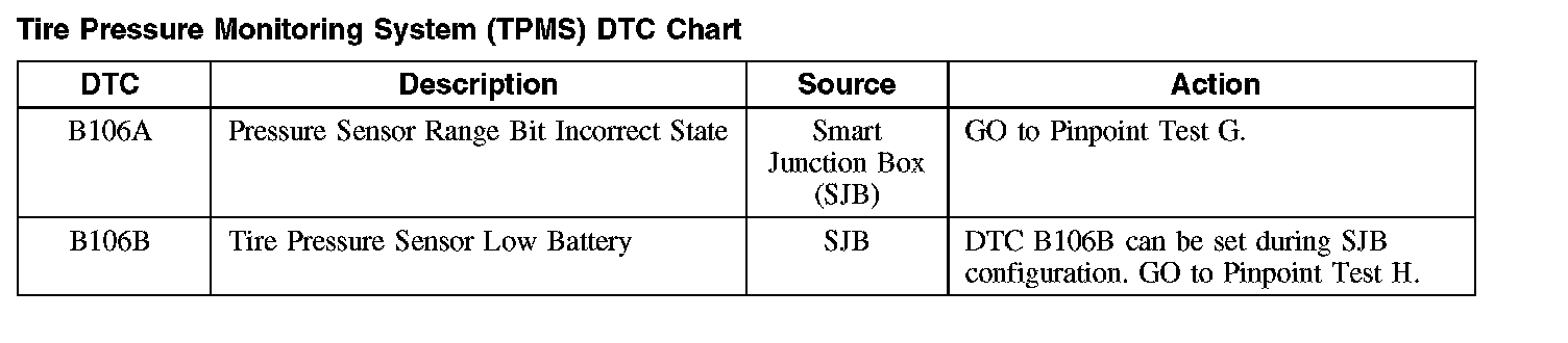 Tire Pressure Monitoring System (TPMS) DTC Chart