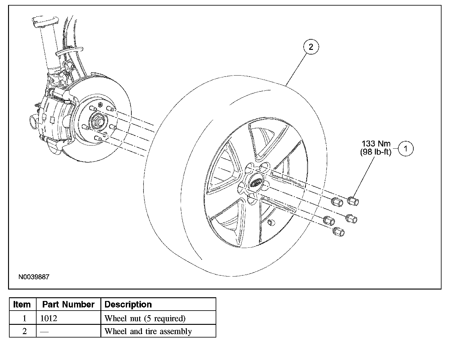 CAUTION: Failure to tighten the wheel nuts in a star pattern can result in high brake disc runout, which will speed up the development of brake roughness, shudder and vibration.