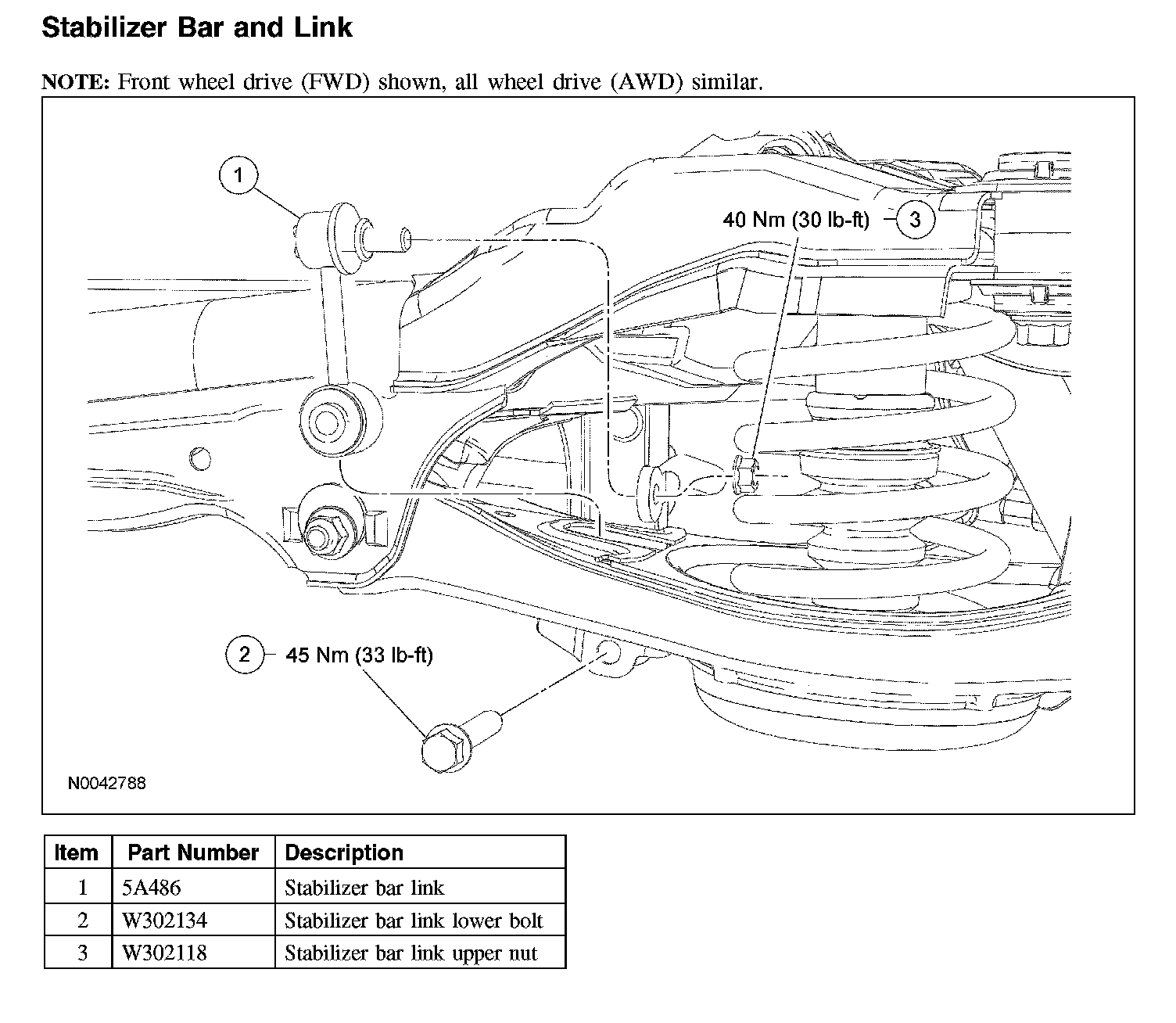 CAUTION: Suspension fasteners are critical parts because they affect performance of vital components and systems and their failure may result in major service expense. New parts must be installed with the same part numbers or equivalent part, if replacement is necessary. Do not use a replacement part of lesser quality or substitute design. Torque values must be used as specified during reassembly to make sure of correct retention of these parts.