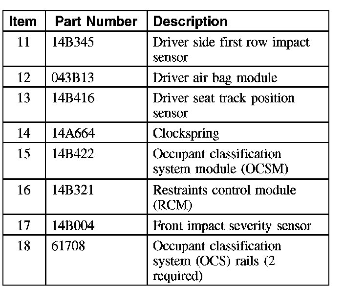 Vehicles are also equipped with an occupant classification sensor (OCS) system as part of the front passenger seat. The OCS includes 2 OCS rails and an occupant classification system module (OCSM).