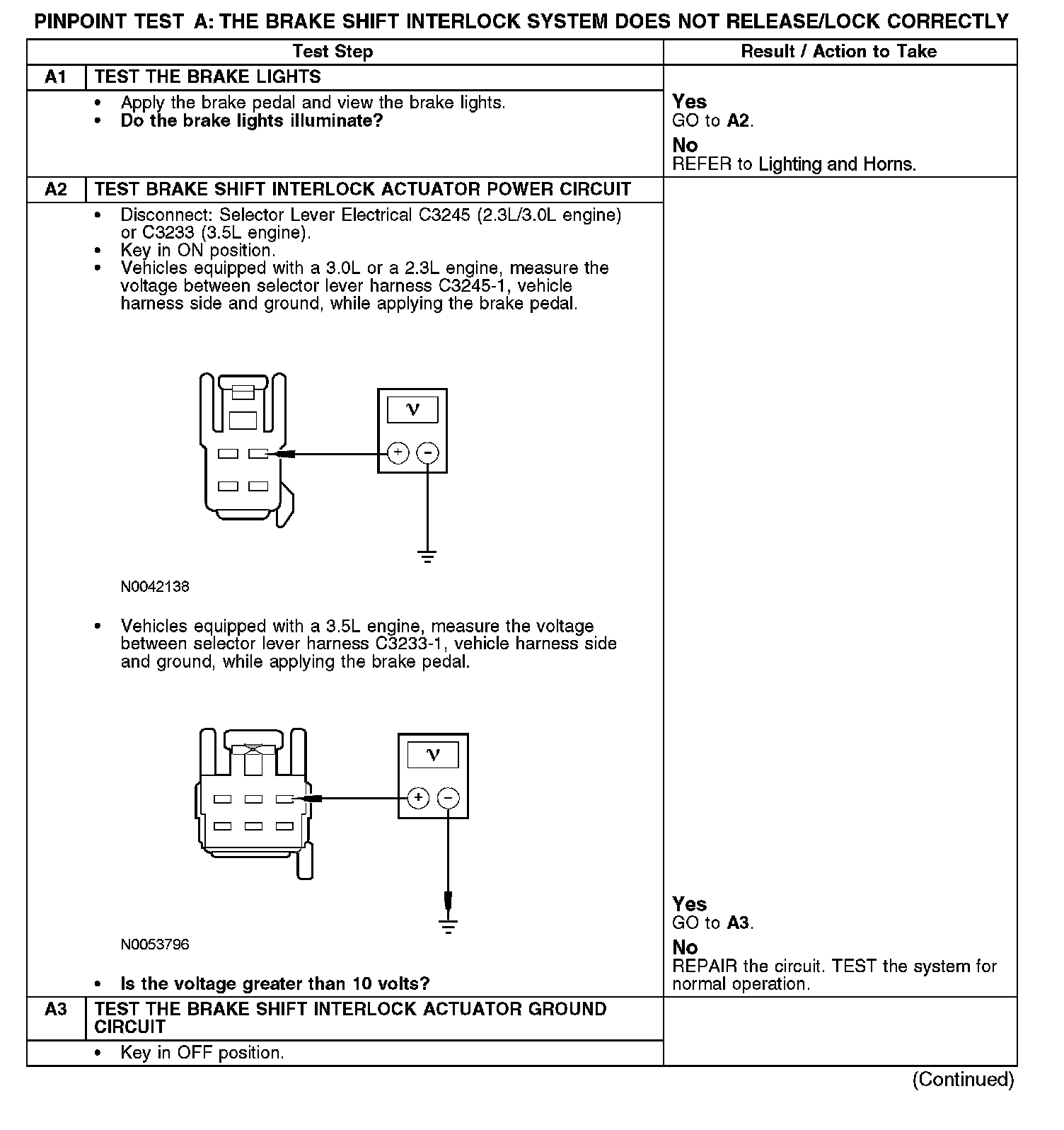 PINPOINT TEST A: THE BRAKE SHIFT INTERLOCK SYSTEM DOES NOT RELEASE/LOCK CORRECTLY