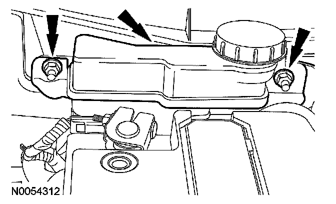 8. Remove the 2 brake fluid reservoir nuts and position the reservoir aside.