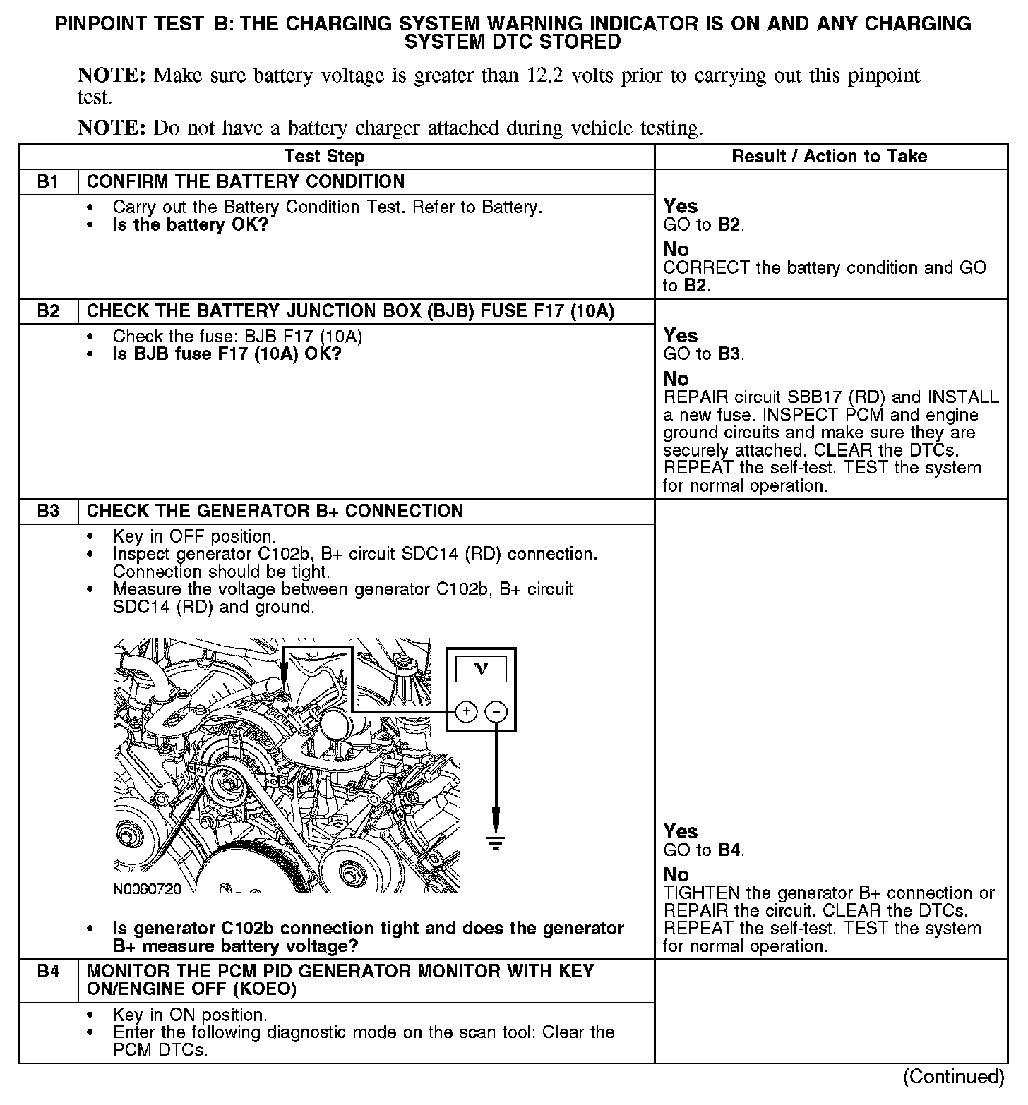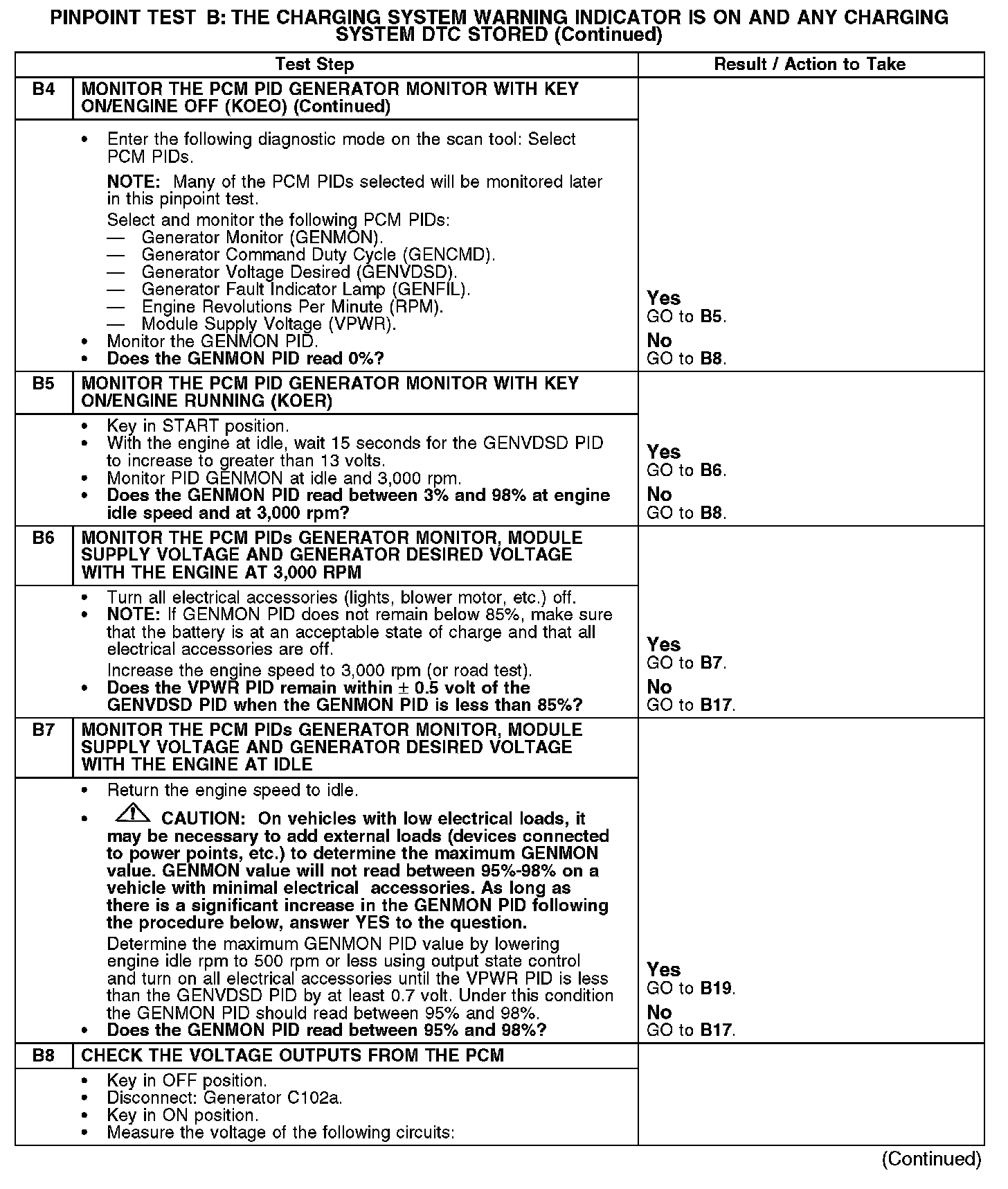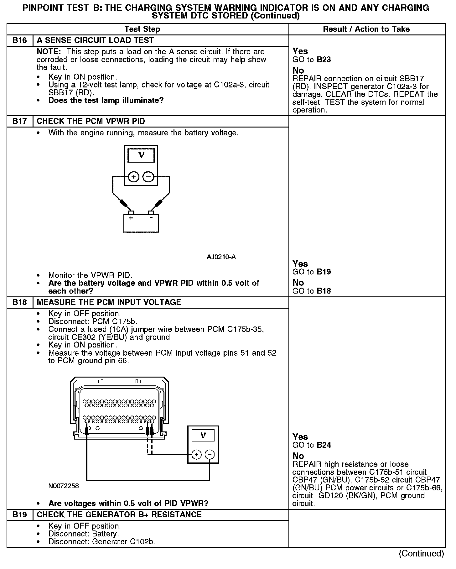 PINPOINT TEST B: THE CHARGING SYSTEM WARNING INDICATOR IS ON AND ANY CHARGING SYSTEM DTC STOREDNormal Operation