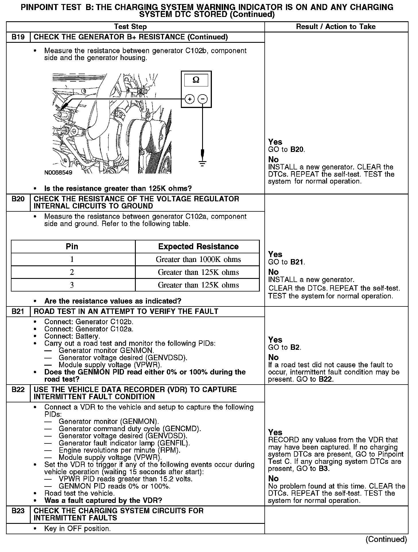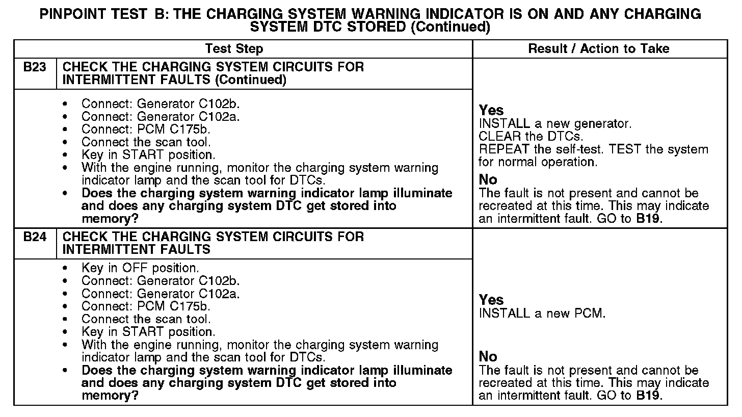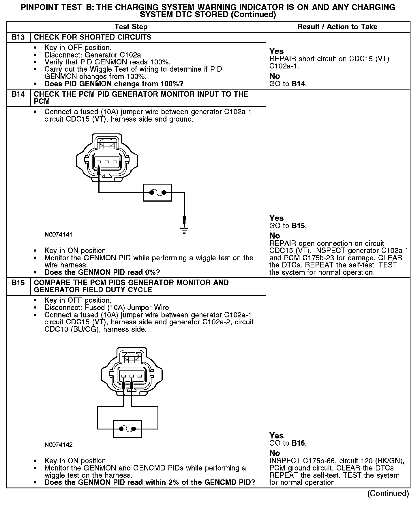 PINPOINT TEST B: THE CHARGING SYSTEM WARNING INDICATOR IS ON AND ANY CHARGING SYSTEM DTC STOREDNormal Operation