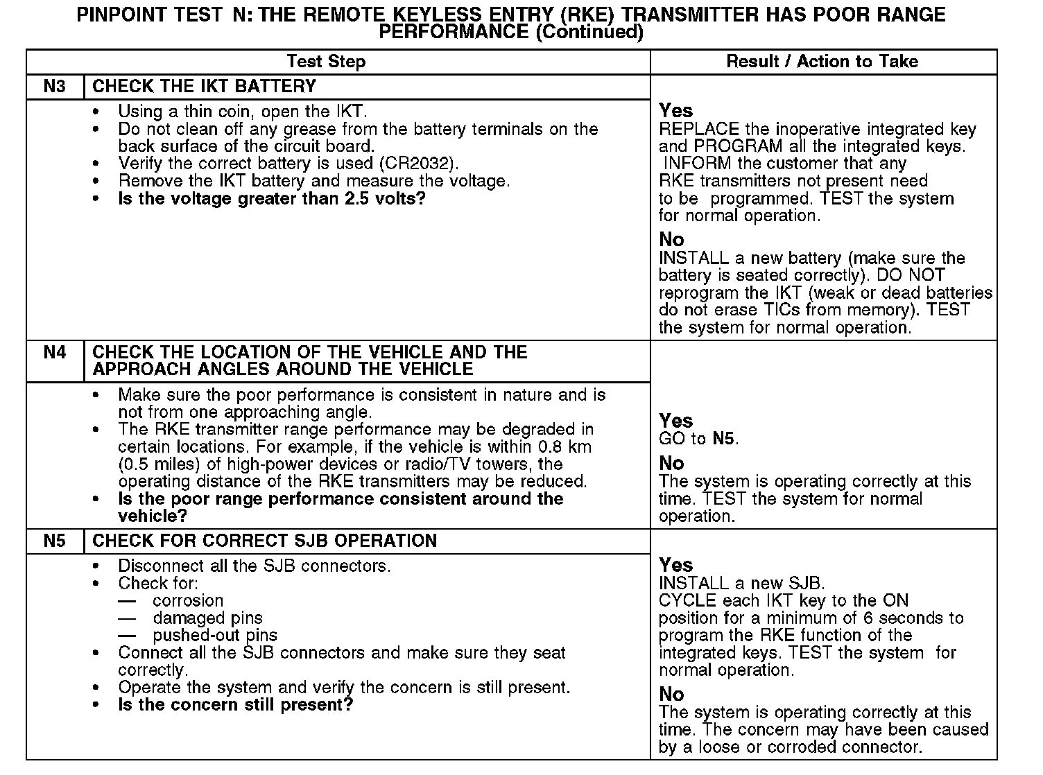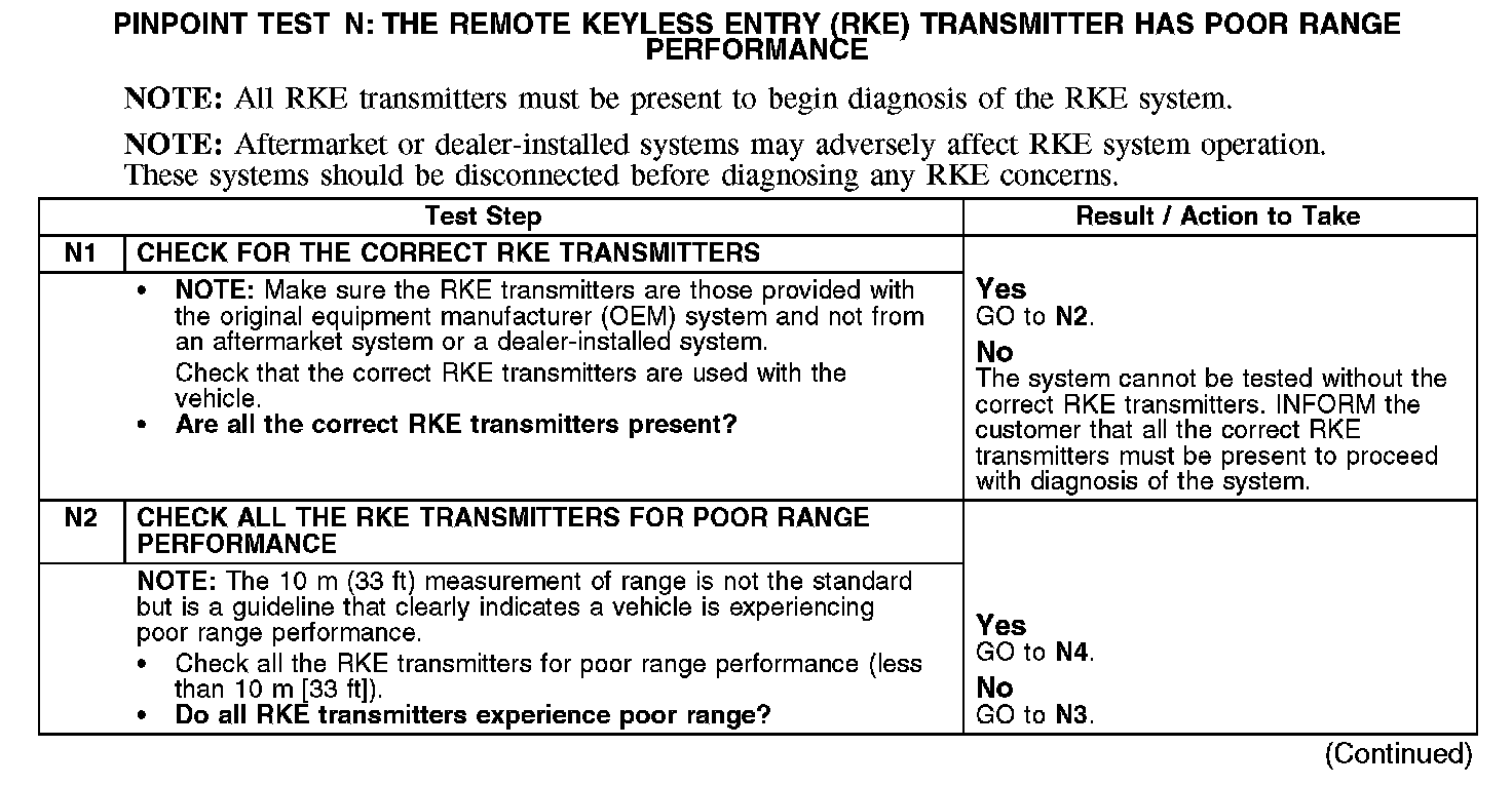 PINPOINT TEST N: THE REMOTE KEYLESS ENTRY (RKE) TRANSMITTER HAS POOR RANGE PERFORMANCE