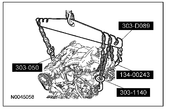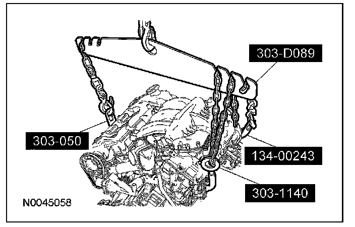 98. Using the special tools and a suitable engine crane, remove the engine and transaxle from the lift table.