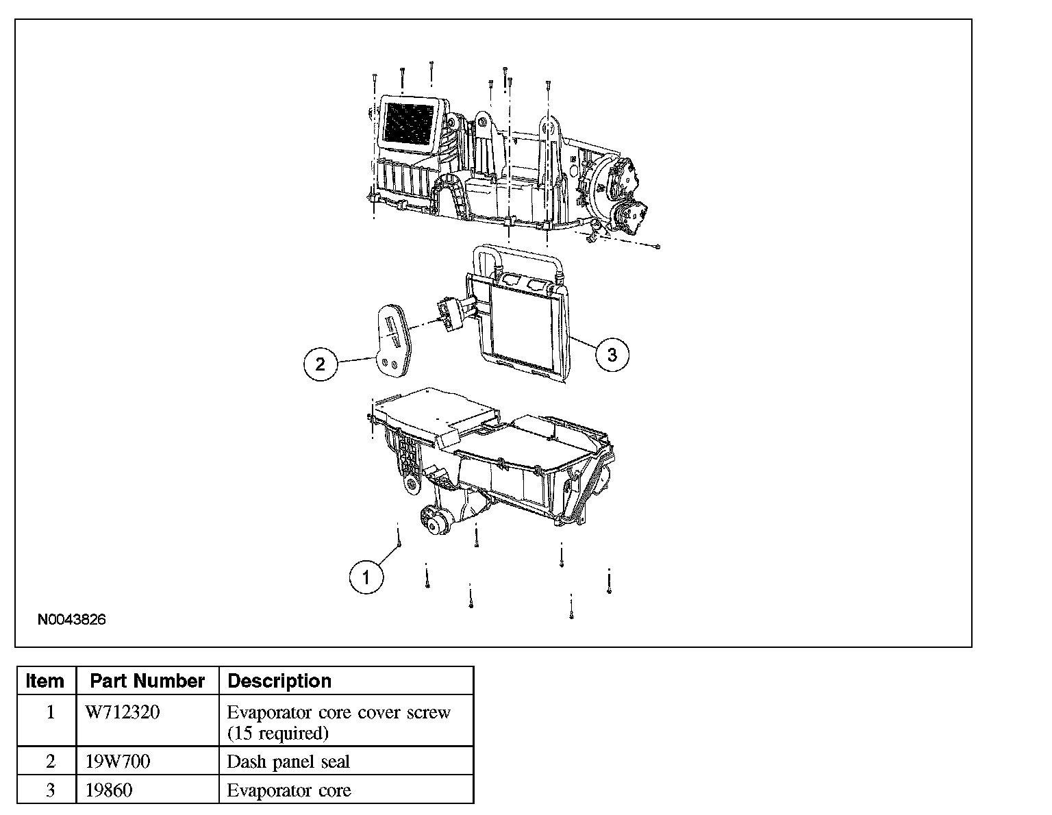 3. Remove the 15 evaporator core cover screws.