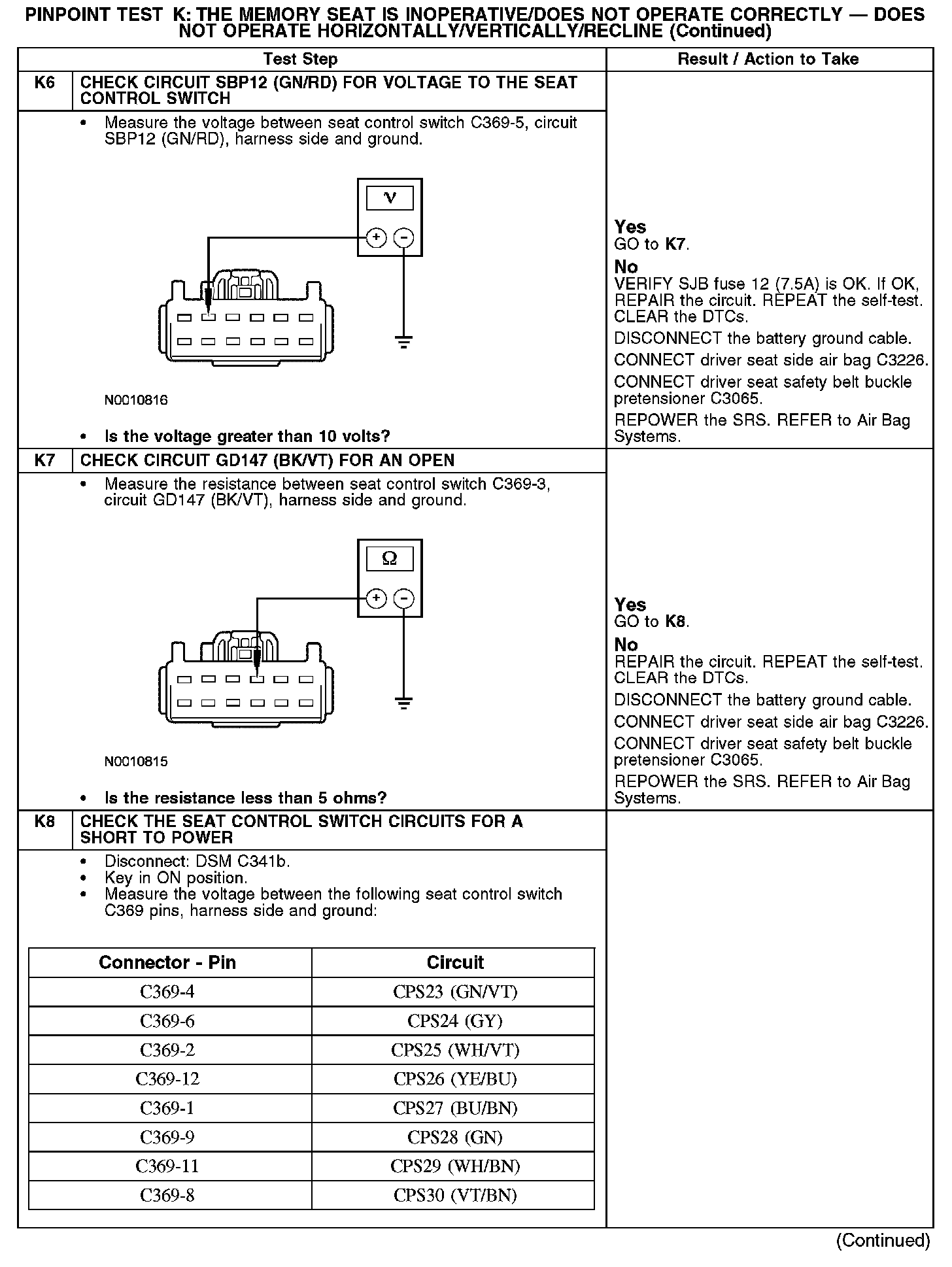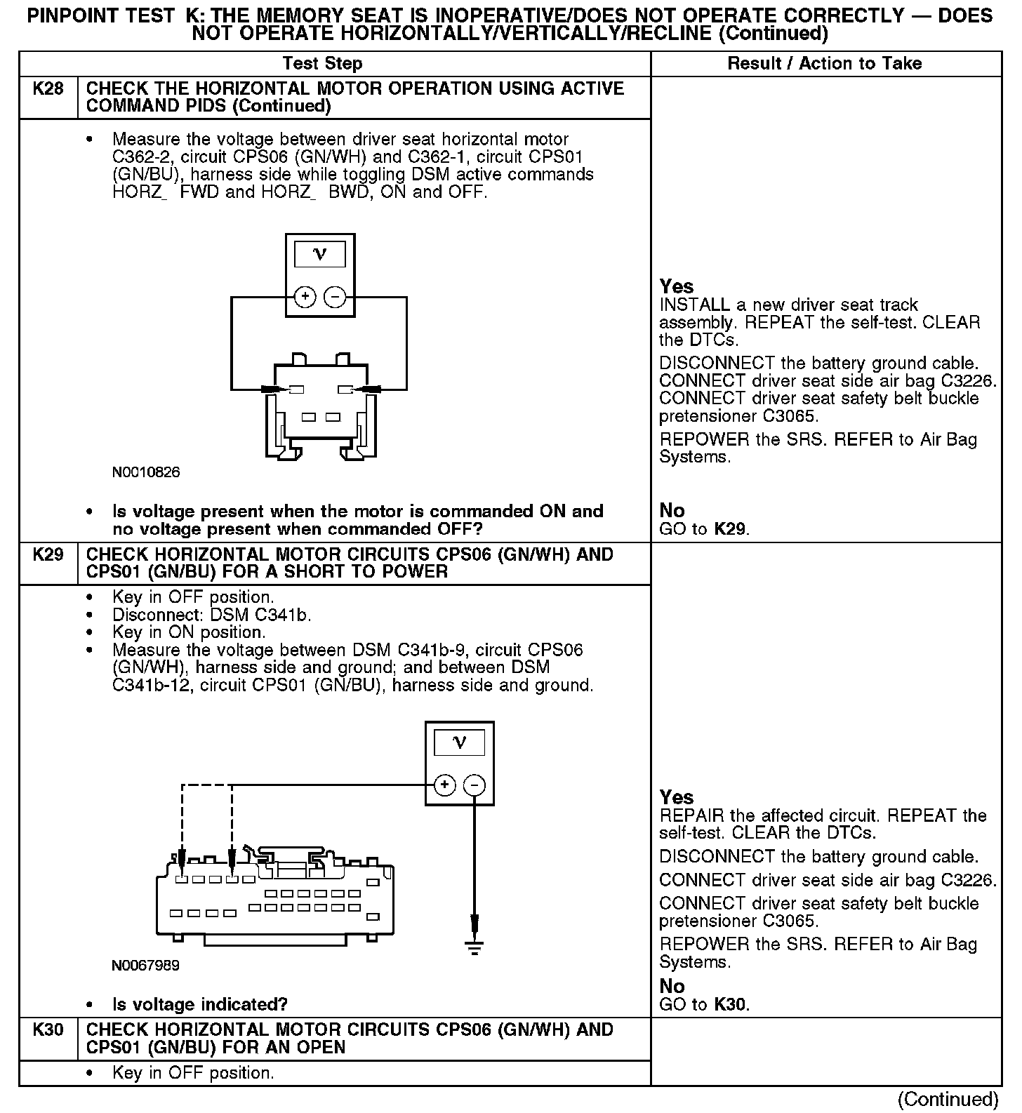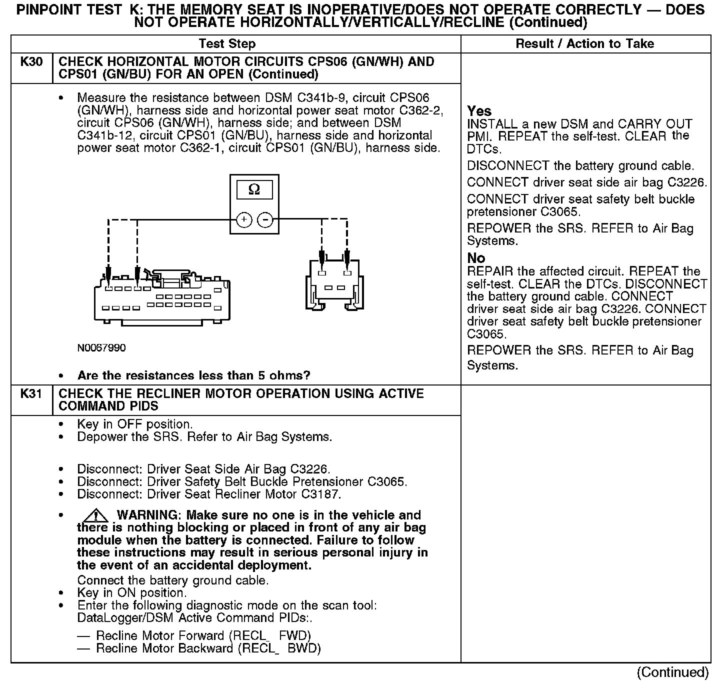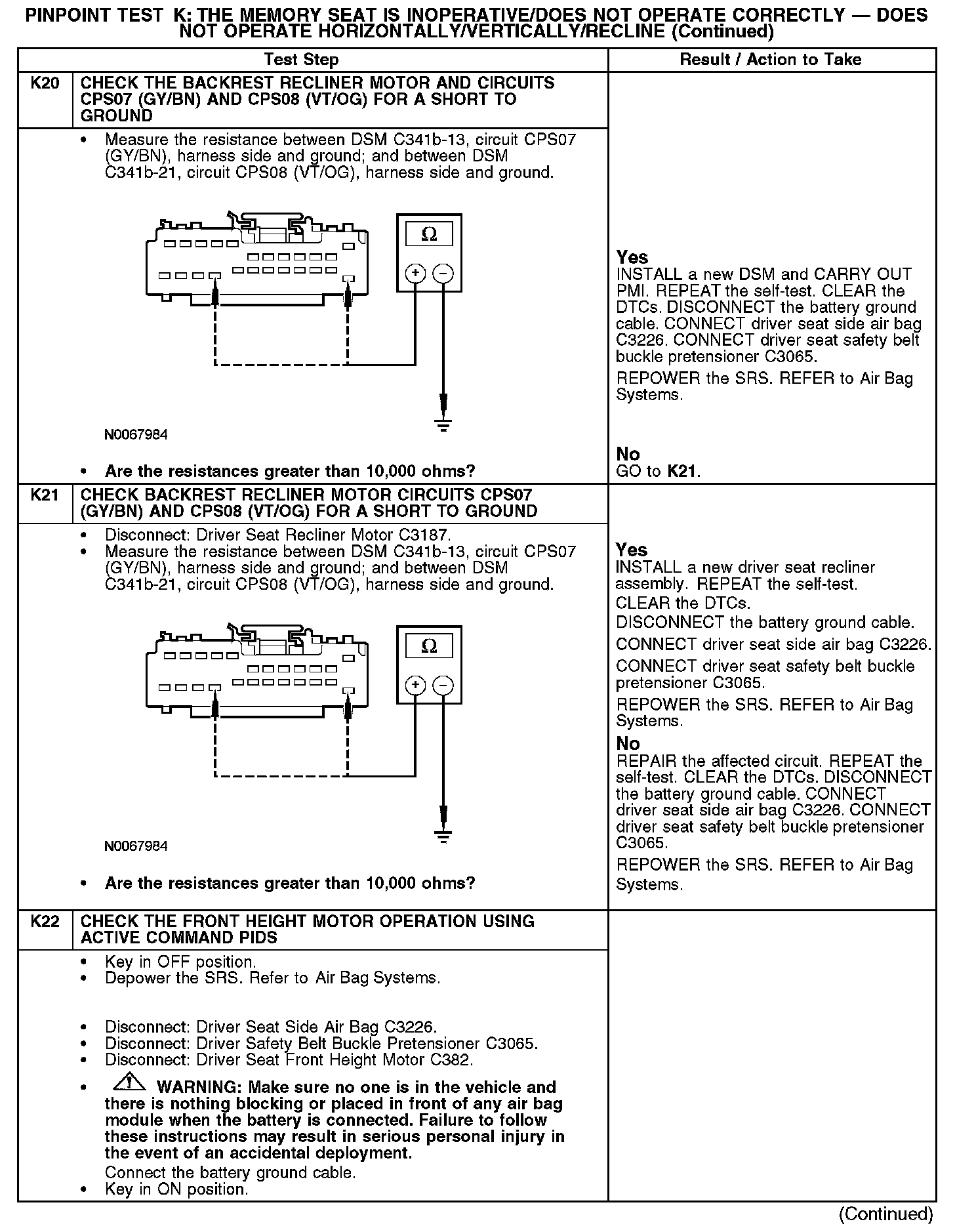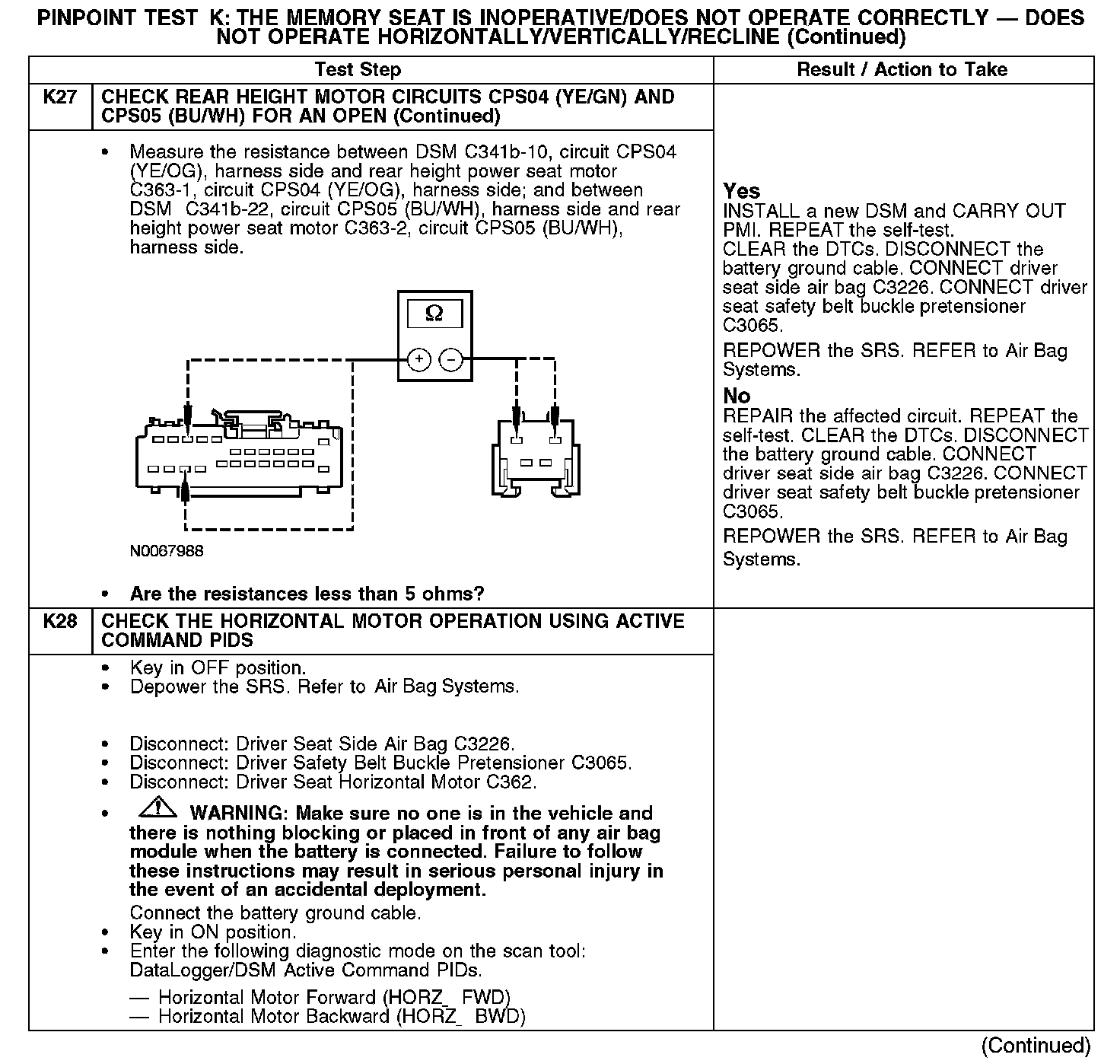 PINPOINT TEST K: THE MEMORY SEAT IS INOPERATIVE/DOES NOT OPERATE CORRECTLY - DOES NOT OPERATE HORIZONTALLY/VERTICALLY/RECLINENormal Operation