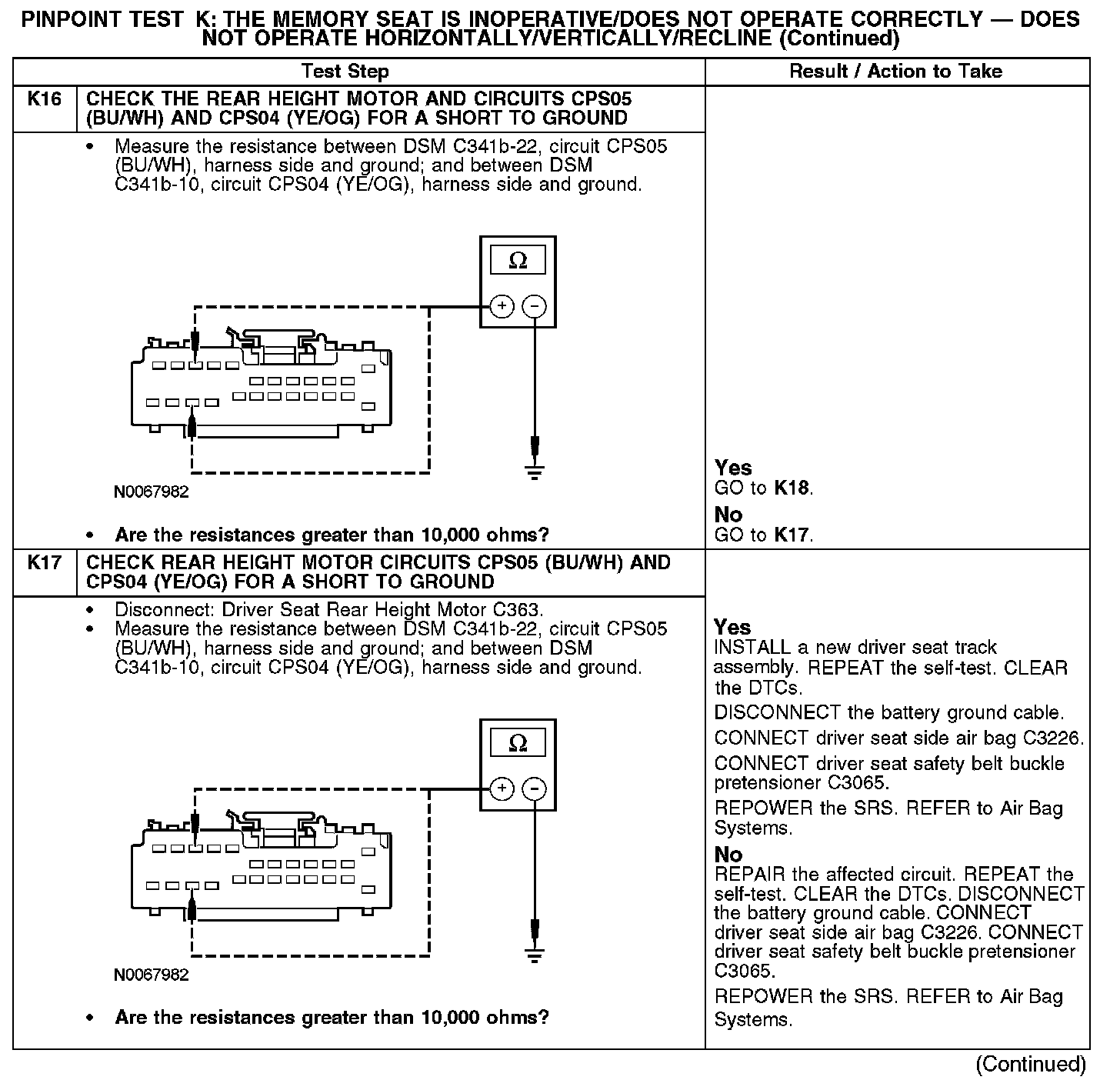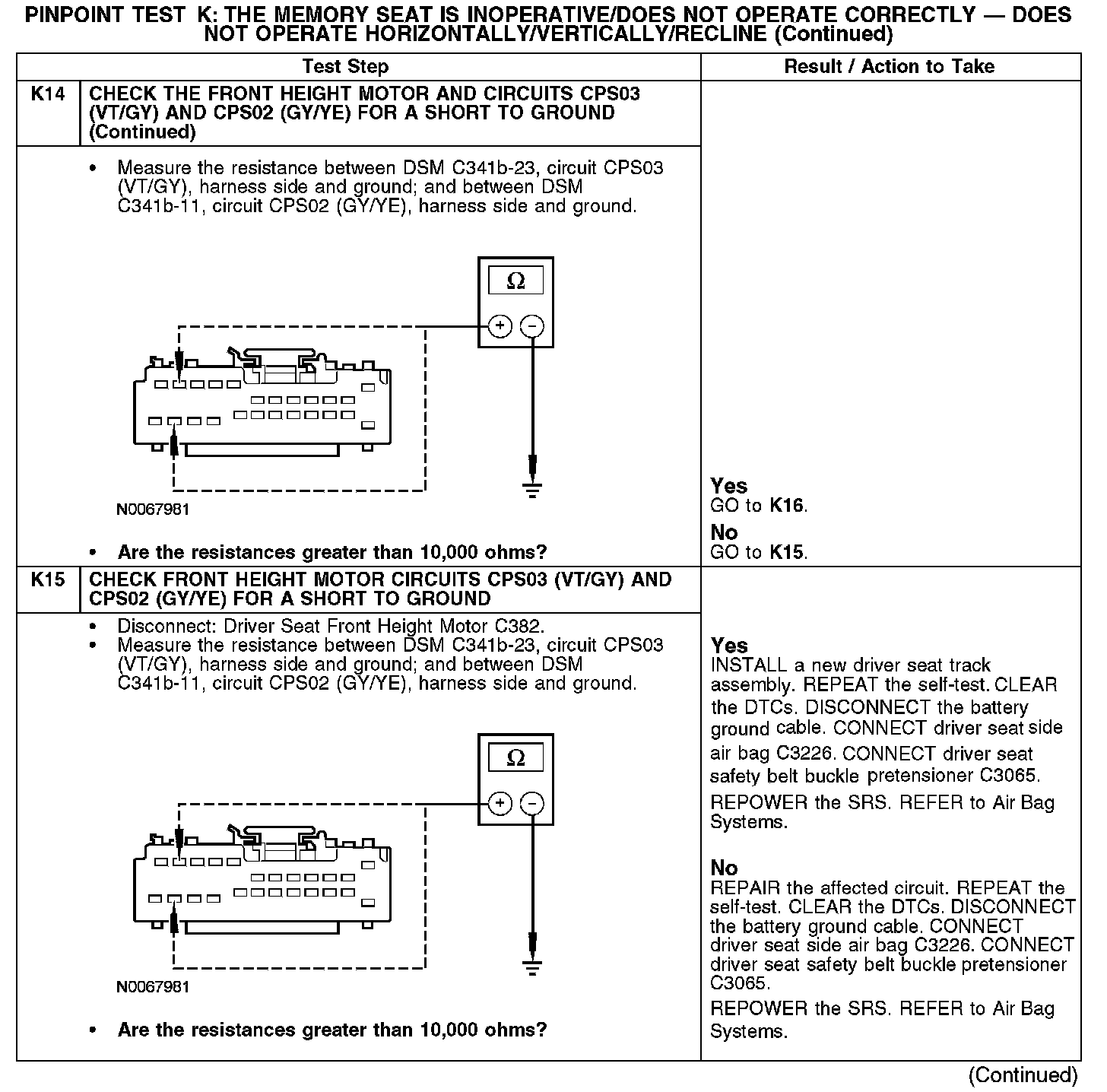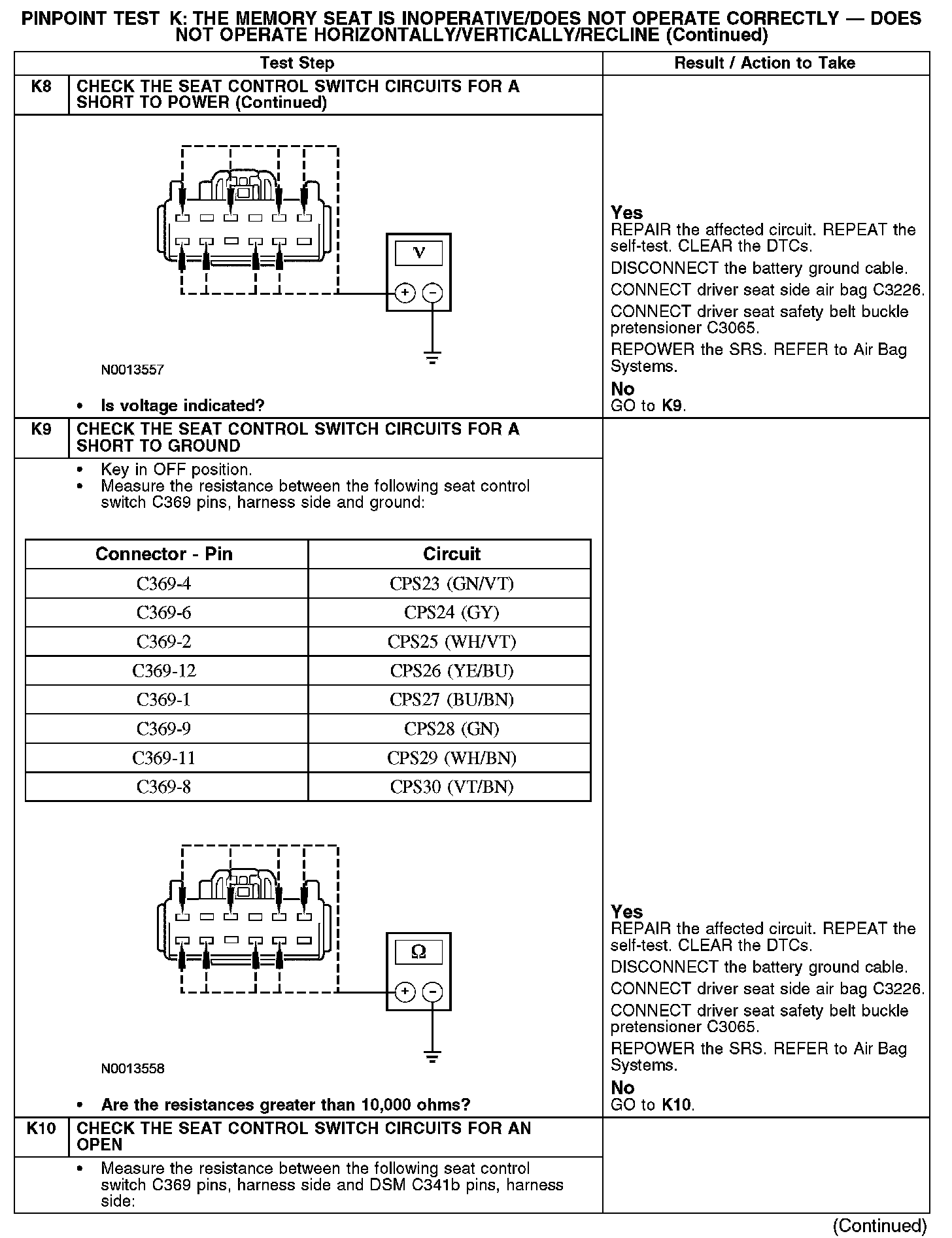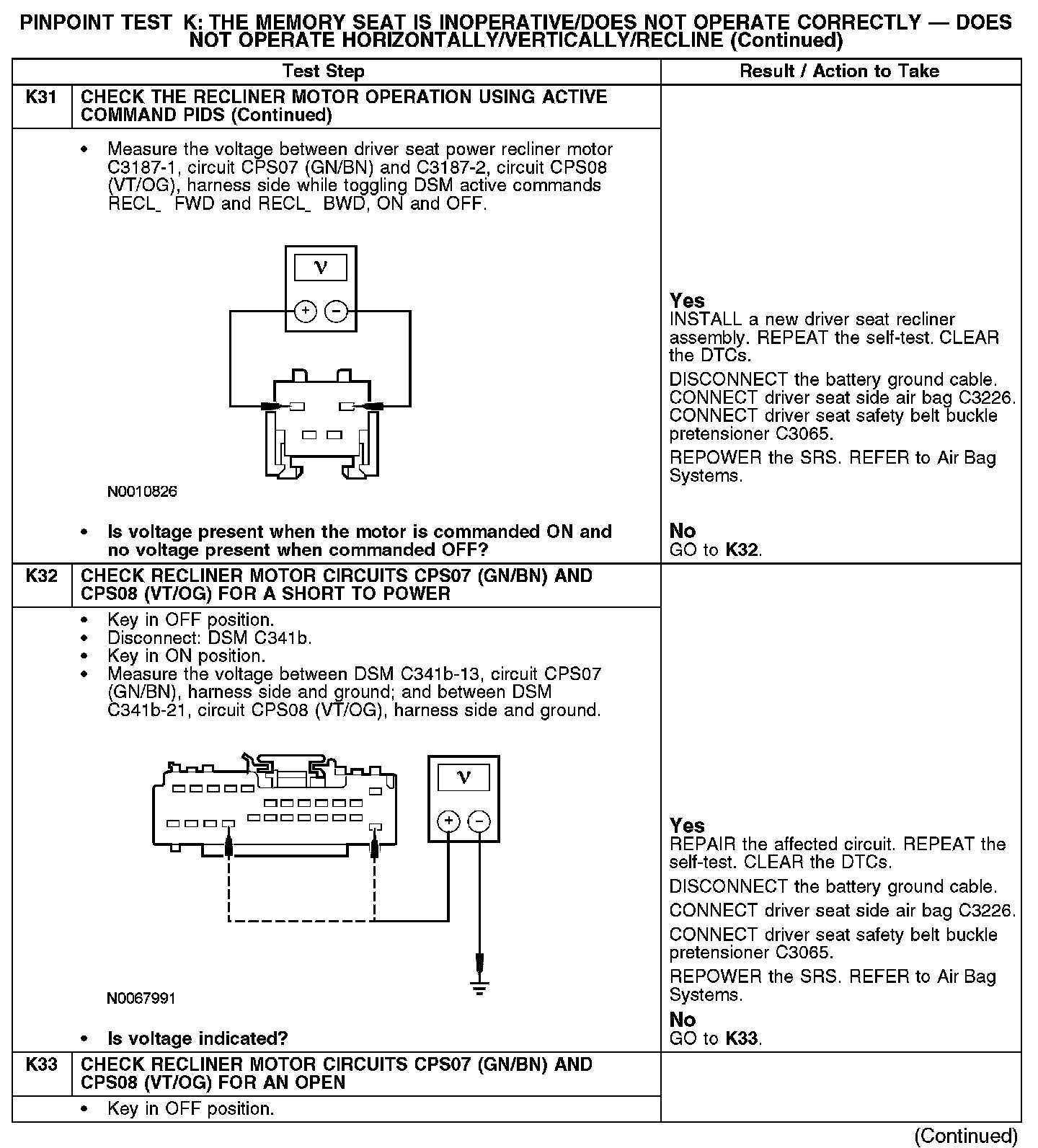 PINPOINT TEST K: THE MEMORY SEAT IS INOPERATIVE/DOES NOT OPERATE CORRECTLY - DOES NOT OPERATE HORIZONTALLY/VERTICALLY/RECLINENormal Operation