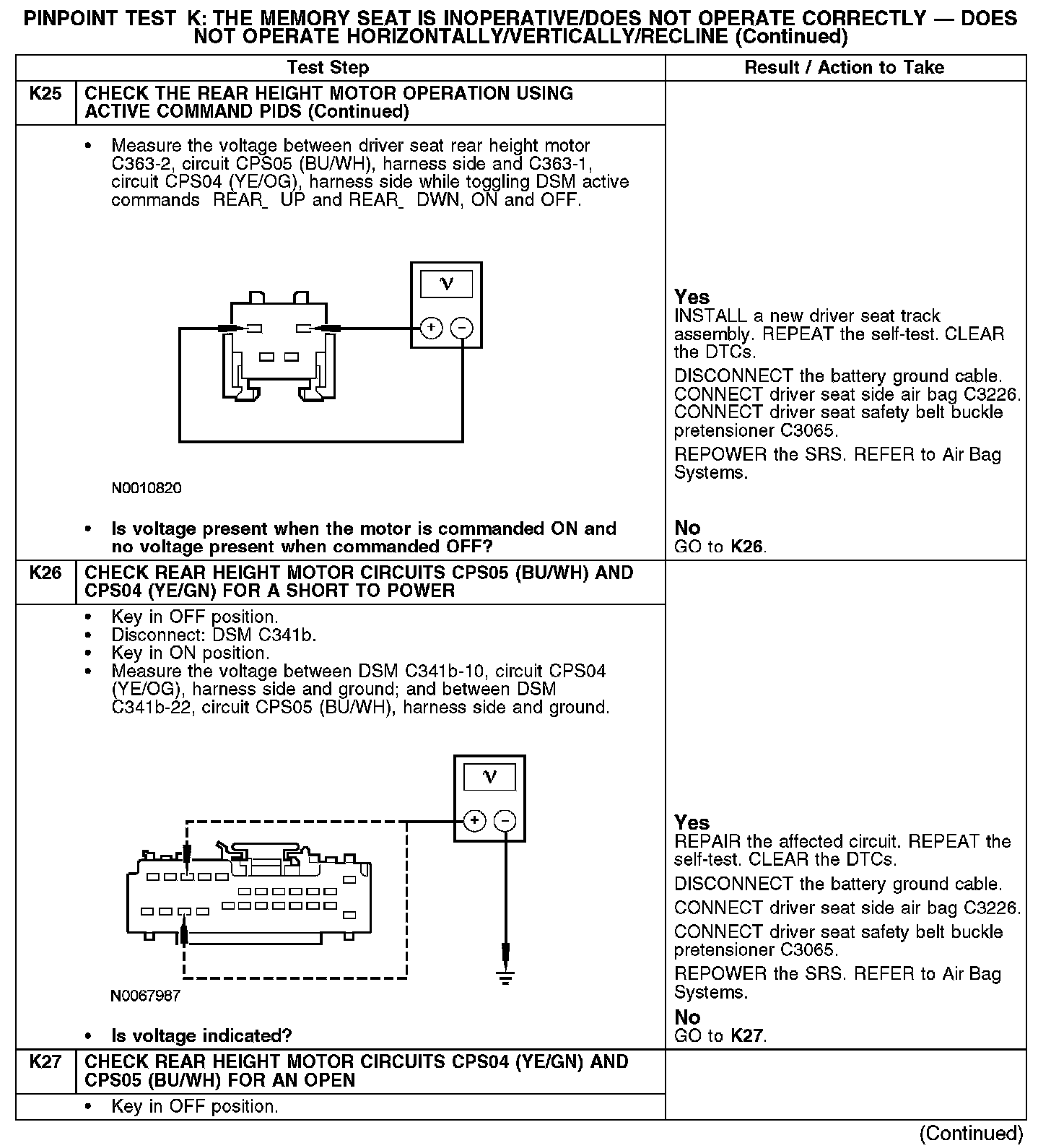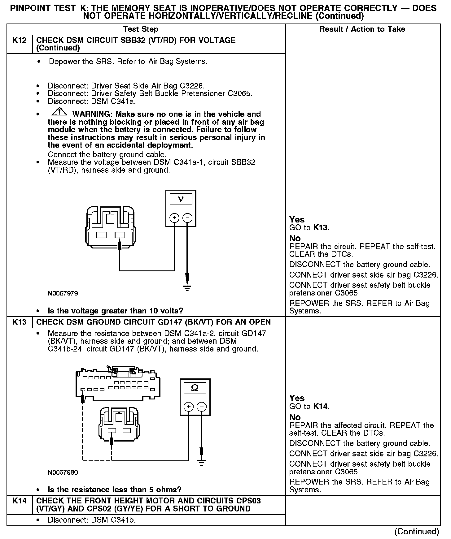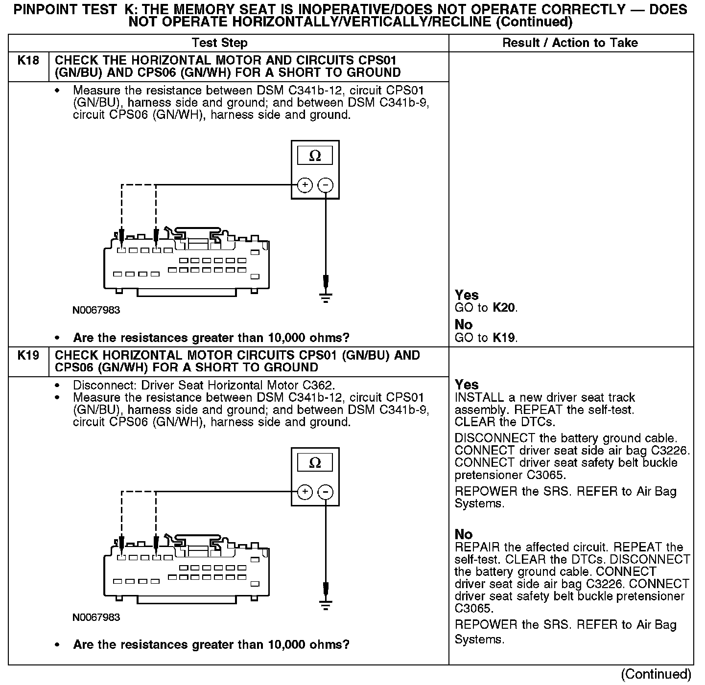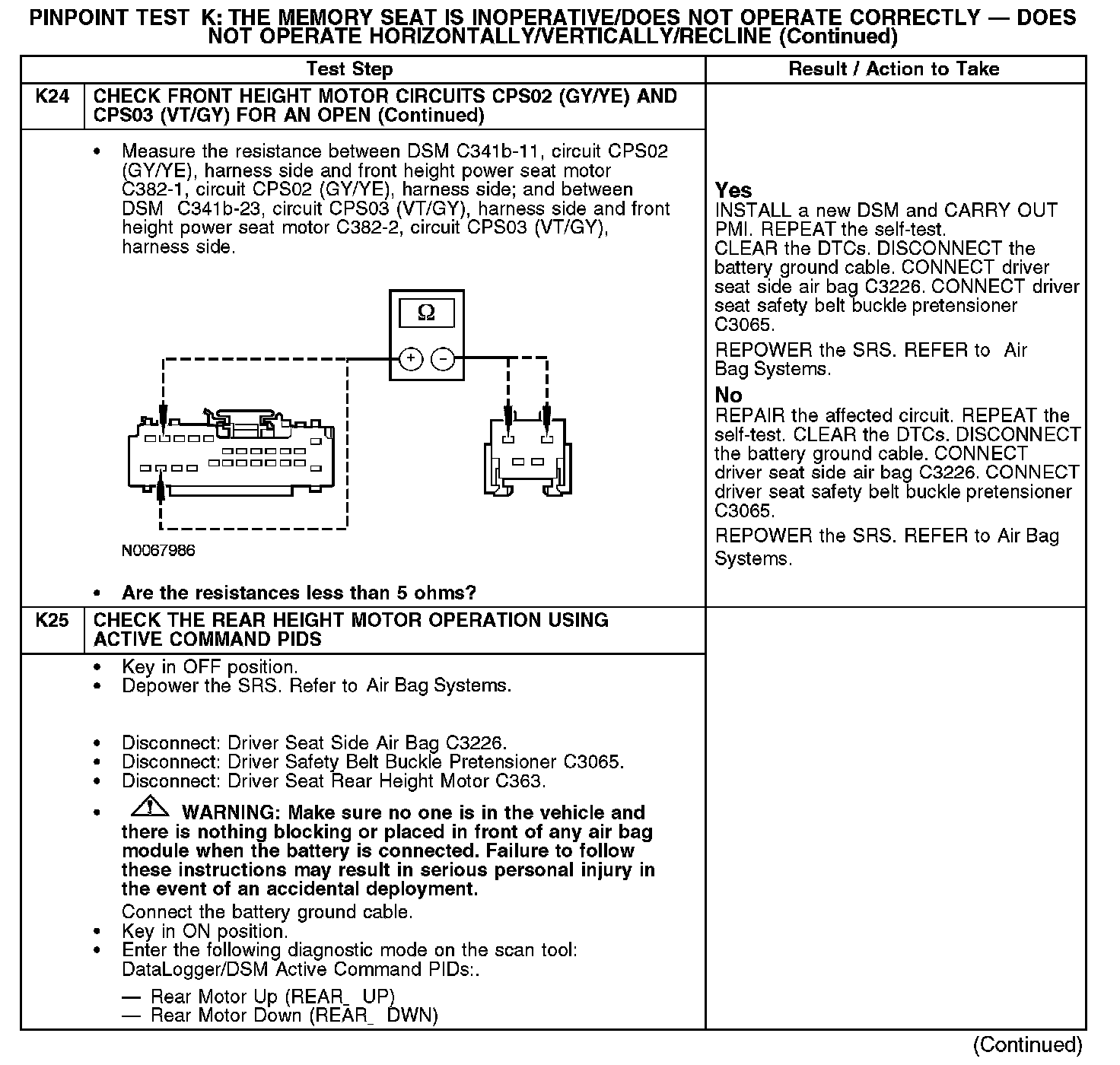 PINPOINT TEST K: THE MEMORY SEAT IS INOPERATIVE/DOES NOT OPERATE CORRECTLY - DOES NOT OPERATE HORIZONTALLY/VERTICALLY/RECLINENormal Operation