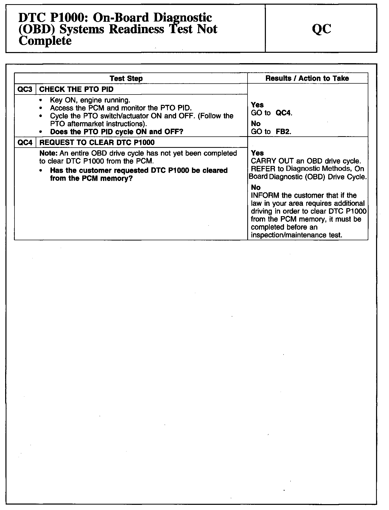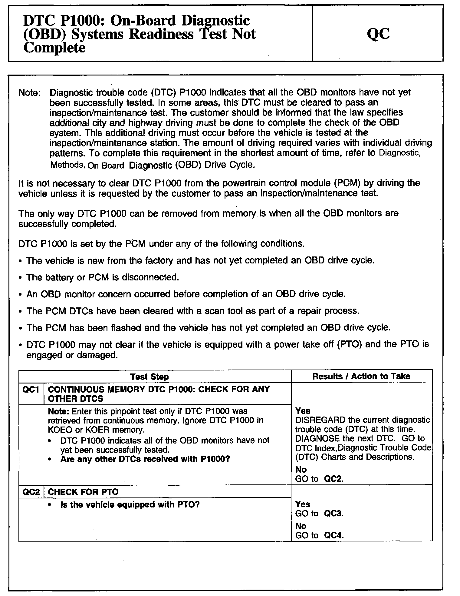 Tests QC: DTC P1000: On-Board Diagnostic (OBD) Systems Readiness Test Not Complete