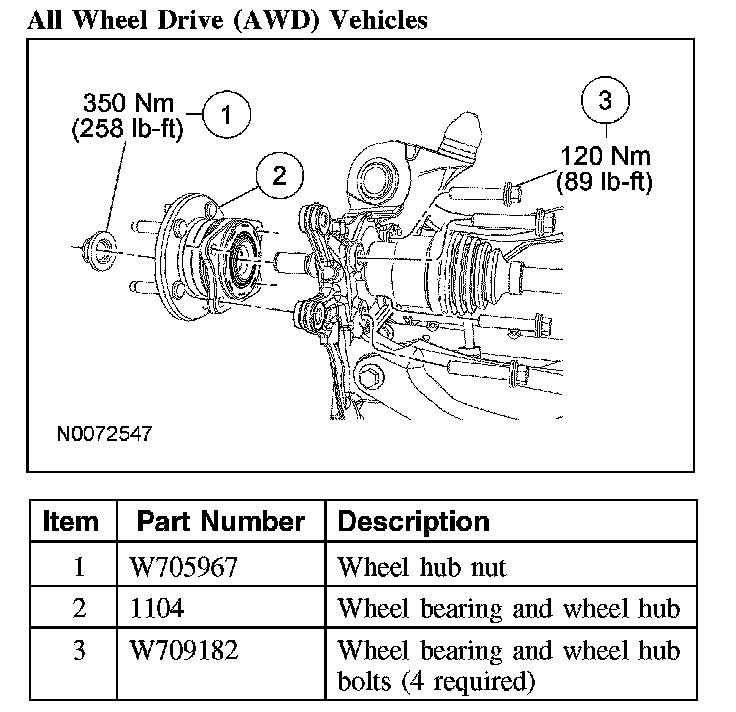 Wheel Bearing and Wheel HubAll Wheel Drive (AWD) Vehicles