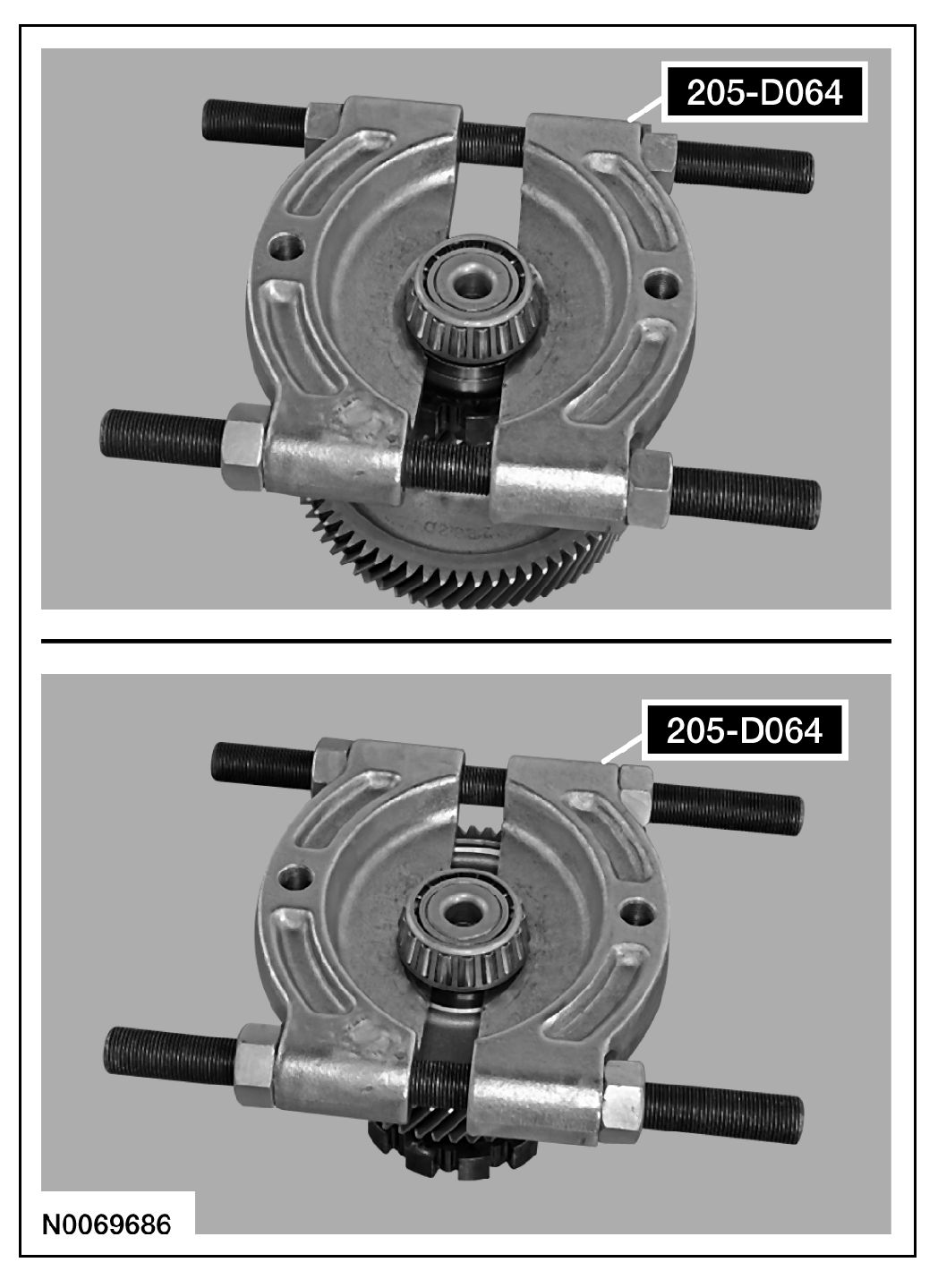 2. Install the Bearing Puller 205-D064 on the bearing.