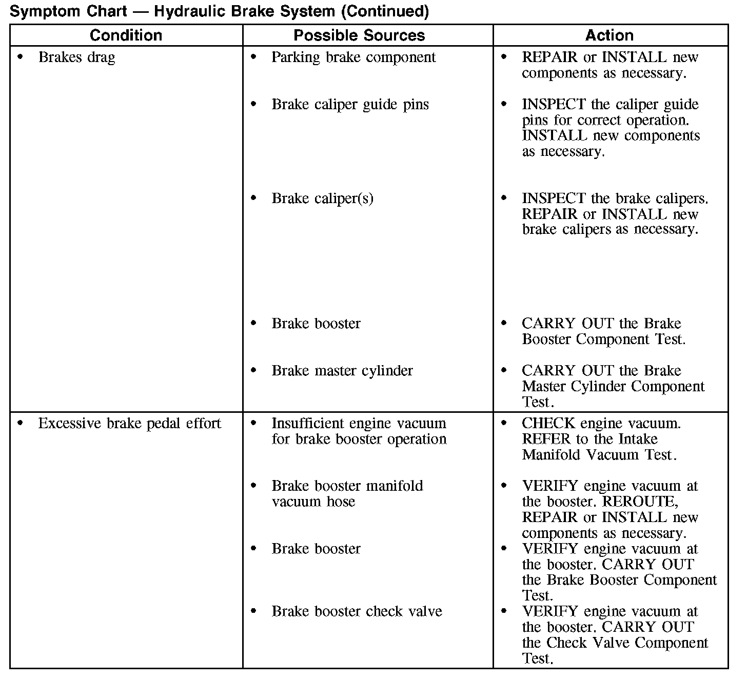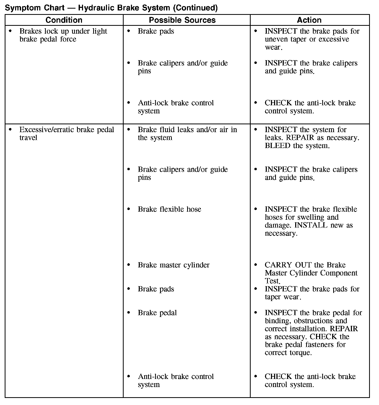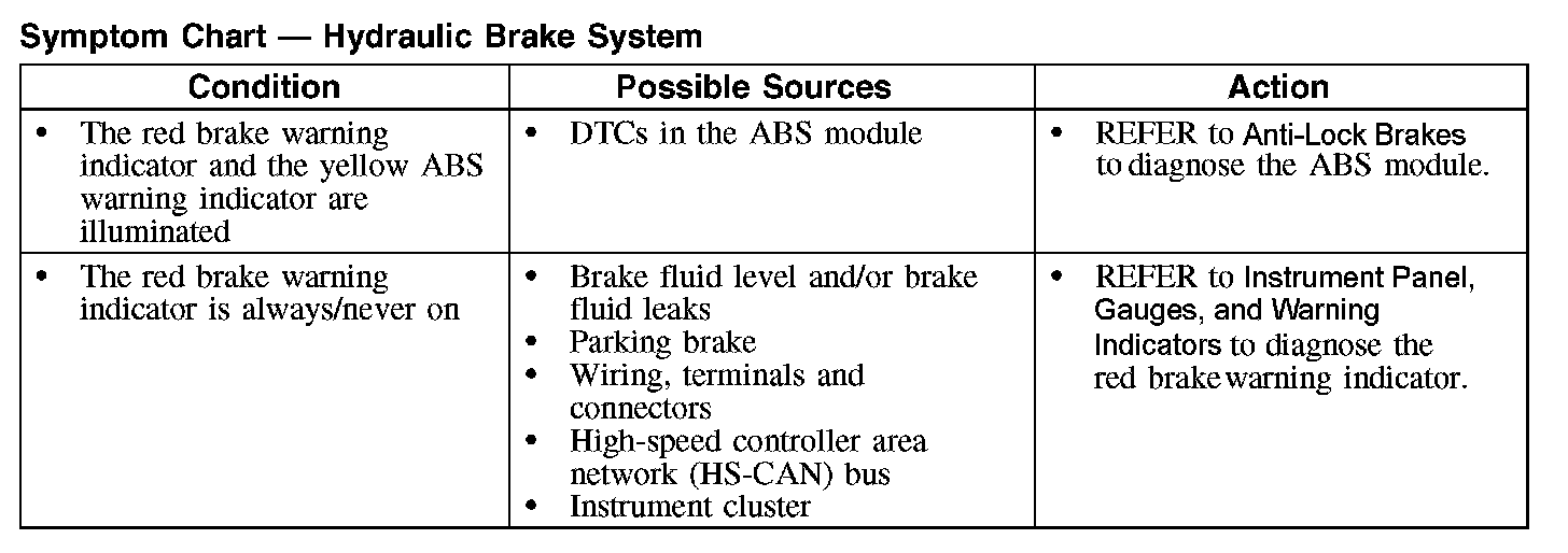 Symptom Chart - Hydraulic Brake System