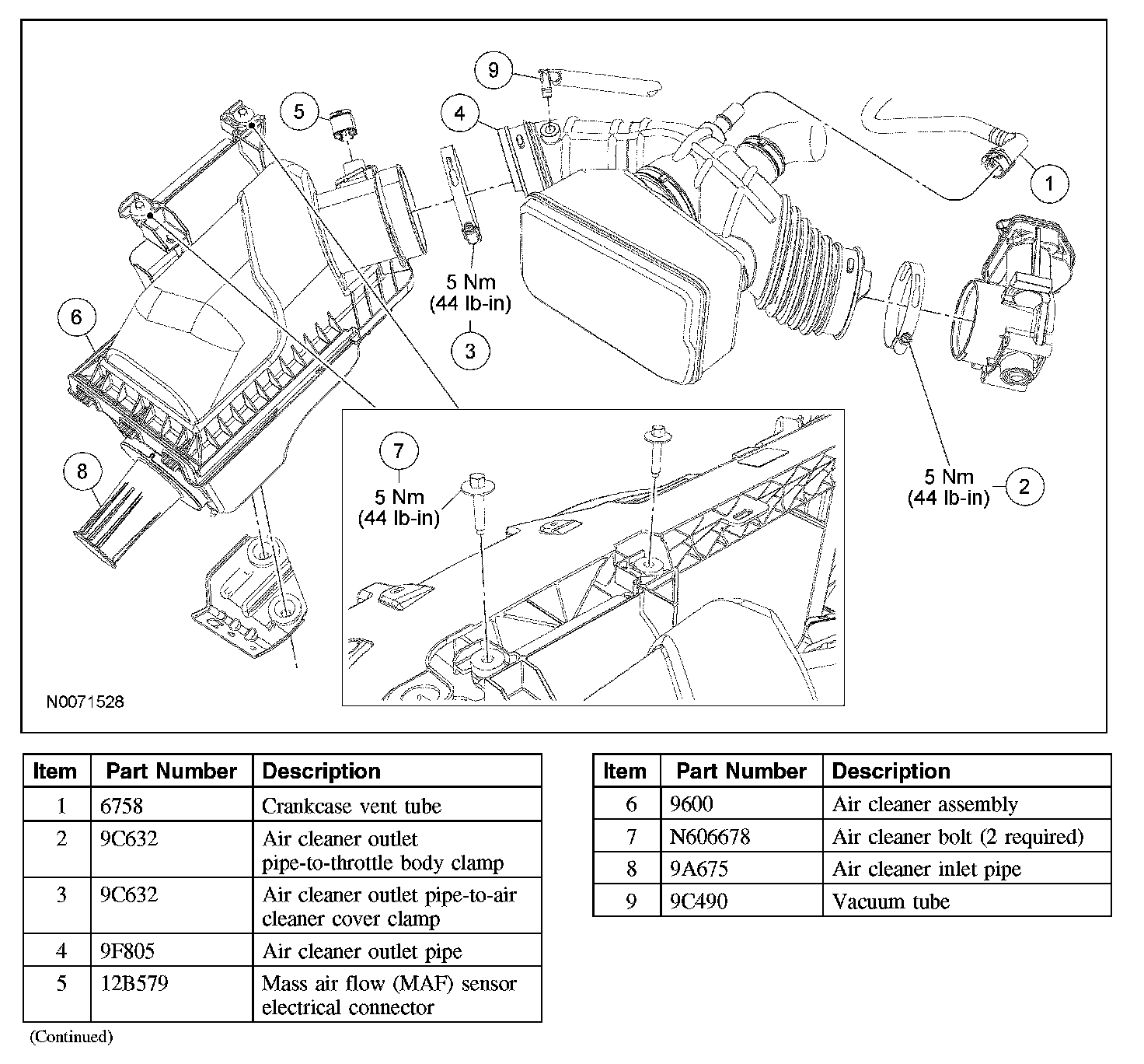 - Make sure that the 2 air cleaner feet are seated into the rubber grommets under the air cleaner assembly and the 2 air cleaner assembly bolts are tightened to specification.