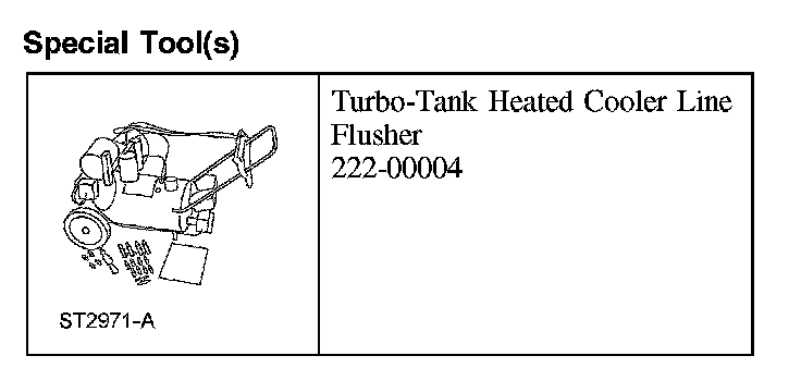 Transmission Fluid Cooler Backflushing and CleaningNOTE: Transmission fluid cooler backflushing will be carried out using the special tool. Follow the manufacturer's instructions included with the machine. Test the equipment to make sure that a vigorous fluid flow is present before proceeding.
